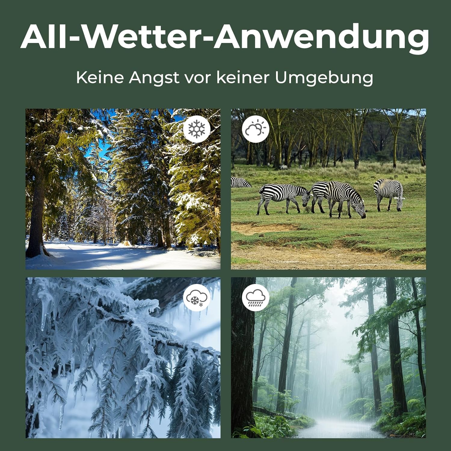 • 【Revolutionäre Dual-Lens und Sternenlicht-Nachtsicht】Die einzigartige Wildtierkamera ist mit einem Dual-Lensen-Design mit astronomischer Optik ausgestattet und kann tagsüber die Ultra-HD-Kamera einschalten und nachts automatisch in den