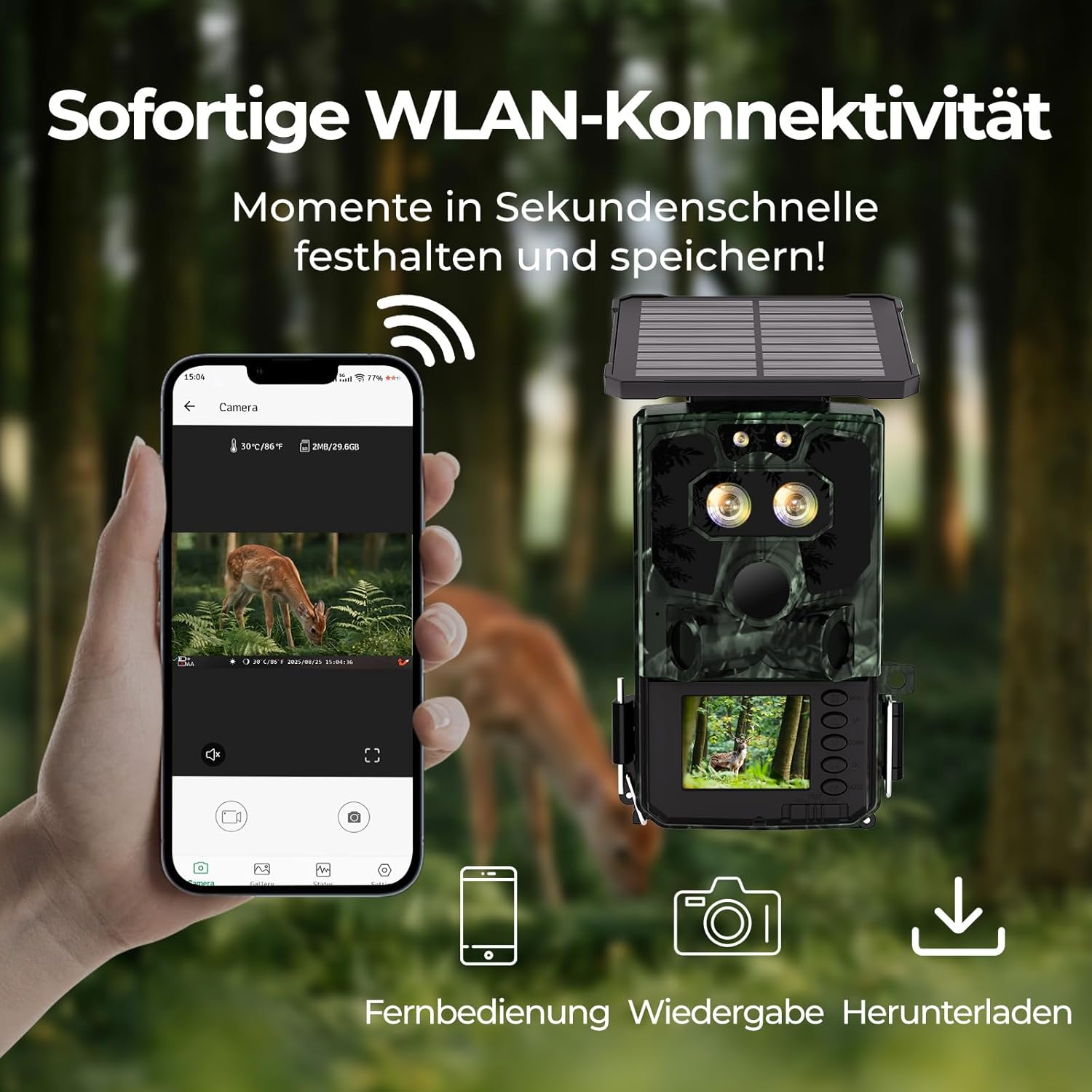 VOOPEAK Duales Objektiv Solar Wildkamera WLAN 4K 60MP, Sternenlicht Nachtsicht Wildkamera mit Handyü