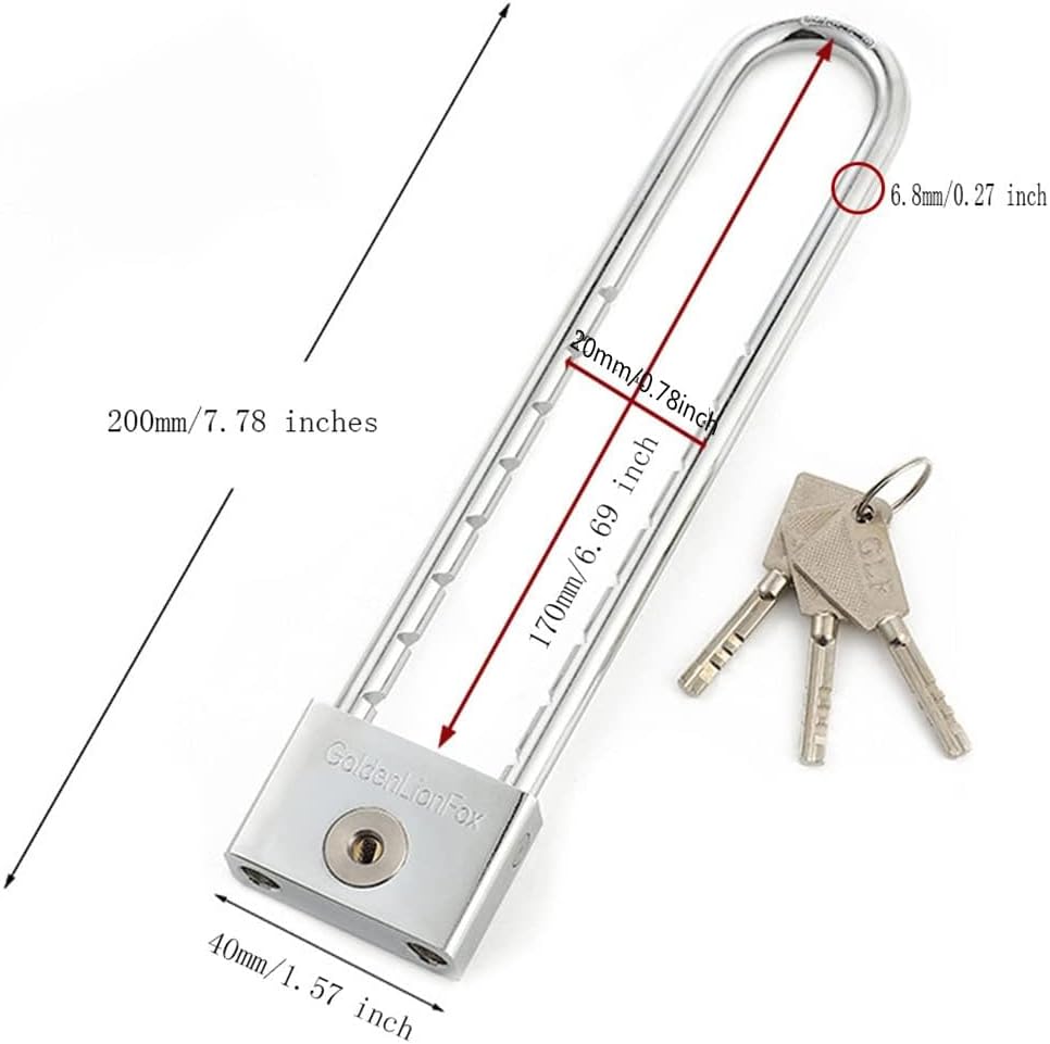 - 🚗【Anwendung】 Langer Sperrbalken Fahrradvorhängeschloss ist geeignet für Lager, Garage, Safe, Werkzeugkasten, Schrank und Schloss. Geeignet für den Innen- und Aussenbereich, Schlösser eignen sich am besten für Schuppen, Tore, Schränke,