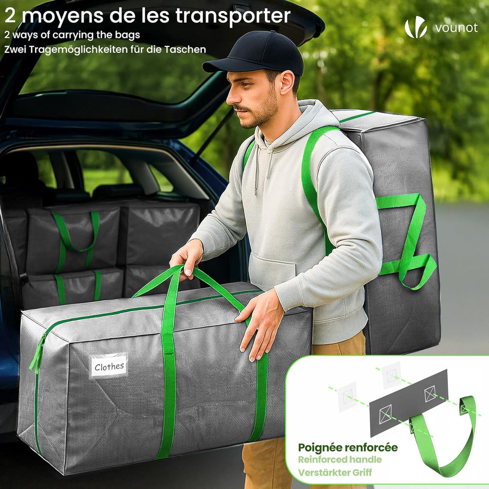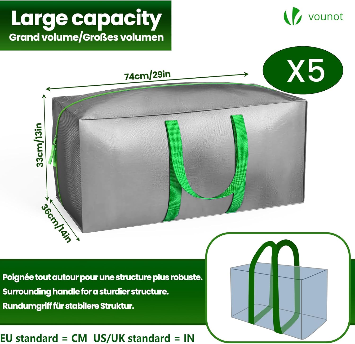 - 5ER-SET – EXTRA GROSSES VOLUMEN: Dieses Set enthält 5 grosse Umzugstaschen mit einem Fassungsvermögen von jeweils ca. 88 Litern (74 x 36 x 33 cm). Ideal zur Aufbewahrung von Kleidung, Bettwäsche, Decken oder Spielzeug – perfekt für Umzüge,