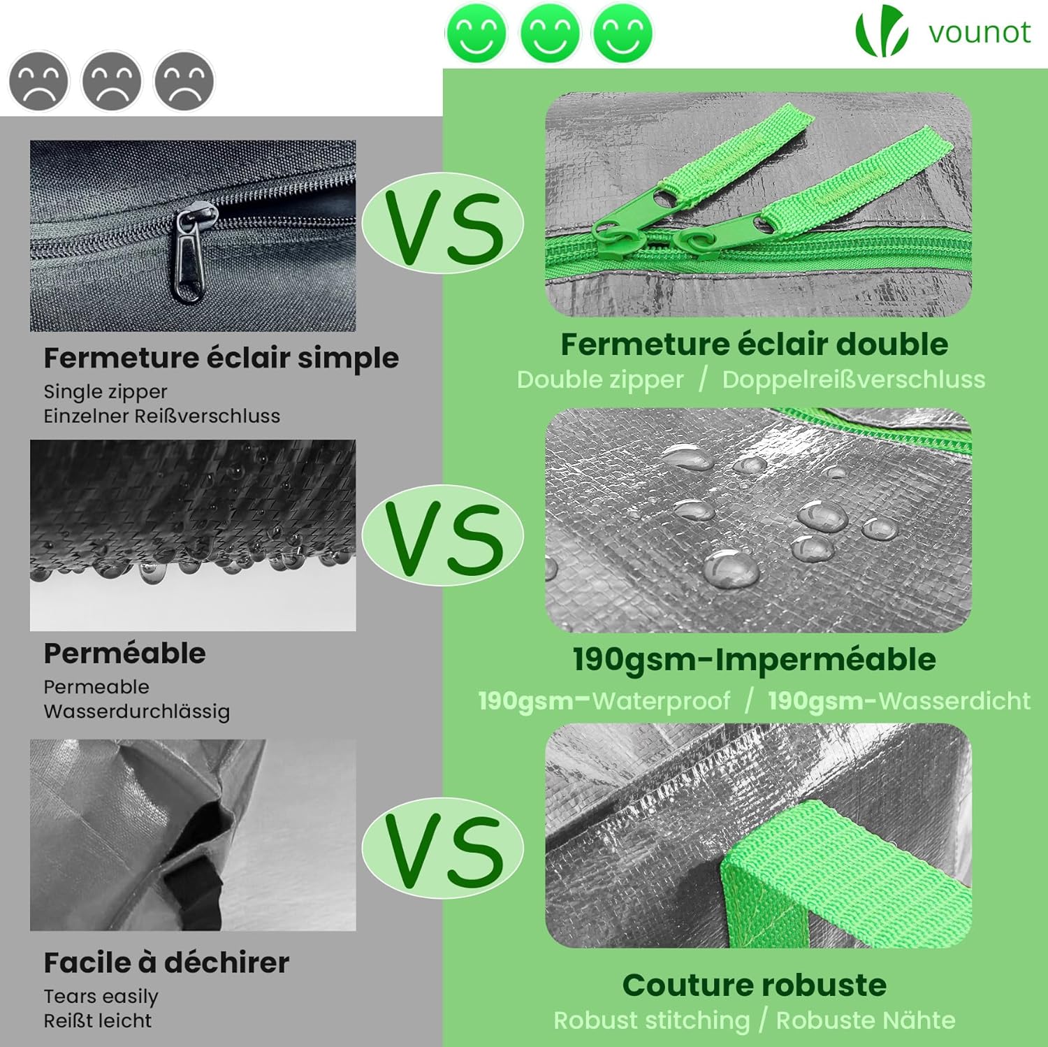 - ROBUST UND BELASTBAR: Gefertigt aus strapazierfähigem Polyethylen (PE) mit 190 g/m², halten die Aufbewahrungstaschen bis zu 25 kg aus. Das dicke, reissfeste Material schützt den Inhalt zuverlässig vor Feuchtigkeit, Abrieb und Beschädigungen –