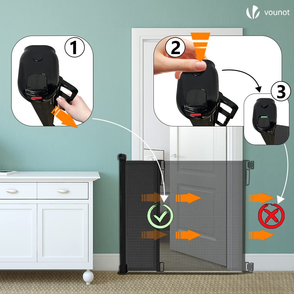 - EINFACHE INSTALLATION: Das einziehbare Treppengitter enthält 2 Sätze Installationszubehör, die in Kombination mit der Ein-Klick-Demontagefunktion sehr bequem an mehreren Orten zu verwenden sind. (Nicht auf die Spitze der Treppen installieren)