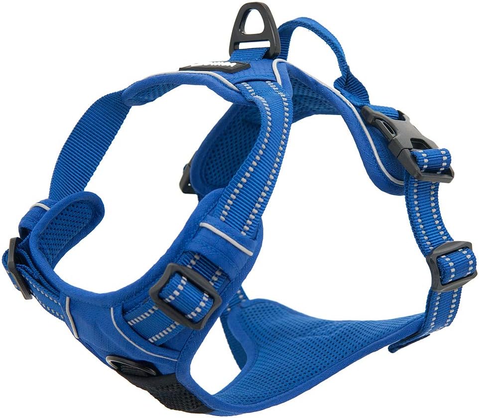 - Stilvoll und sicher – Gitter-Nylon-Design macht dieses Geschirr mehr als ein Vorderleine für grosse Rassen, es ist ein Accessoire. Die 3M-Reflektorbänder an den vier verstellbaren Riemen halten Ihren Hund bei Nacht und bei schlechten