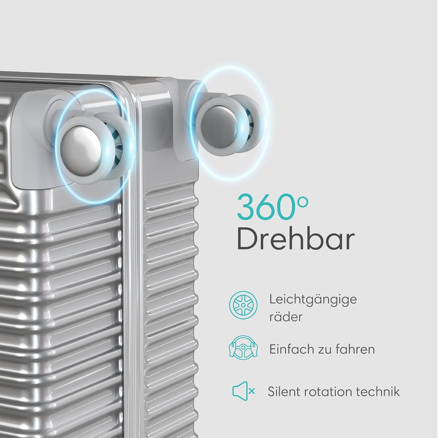 - LEICHTGÄNGIGE 360°-SPINNER-RÄDER: Mit den leichtgängigen und geräuscharmen 360°-Spinner-Rädern können Sie sich mühelos durch überfüllte Flughäfen und belebte Strassen manövrieren. Gleiten Sie mühelos durch jedes Gelände, und geniessen Sie