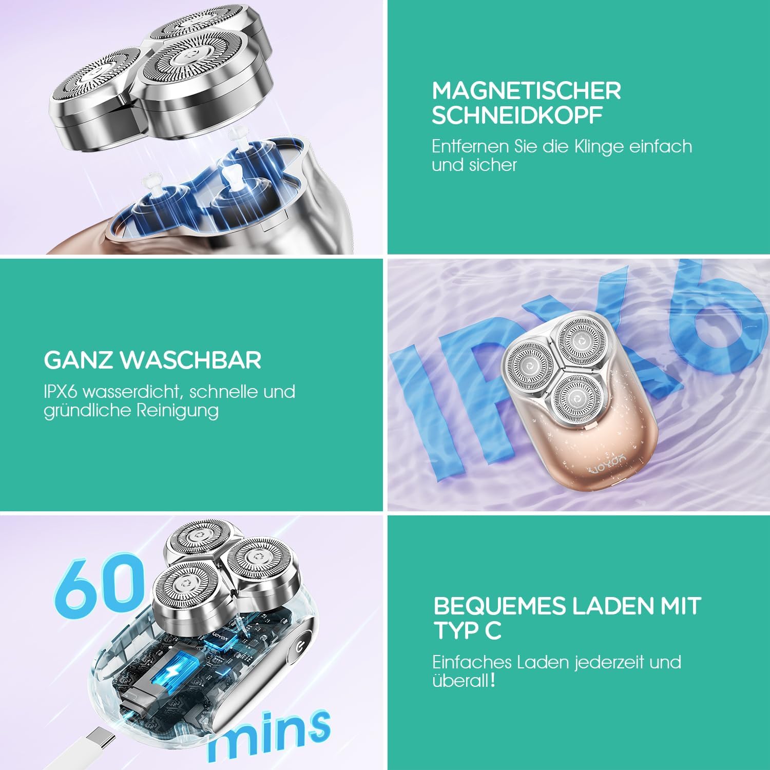 - Effizient und langlebig: Der schwebende 3D-rasierer damen passt sich den Konturen Ihres Gesichts und den Kurven Ihres Körpers mit Leichtigkeit an! Schnelles Schneiden mit leistungsstarkem Motor. Internes selbstschärfendes Klingendesign, Klinge und Netz