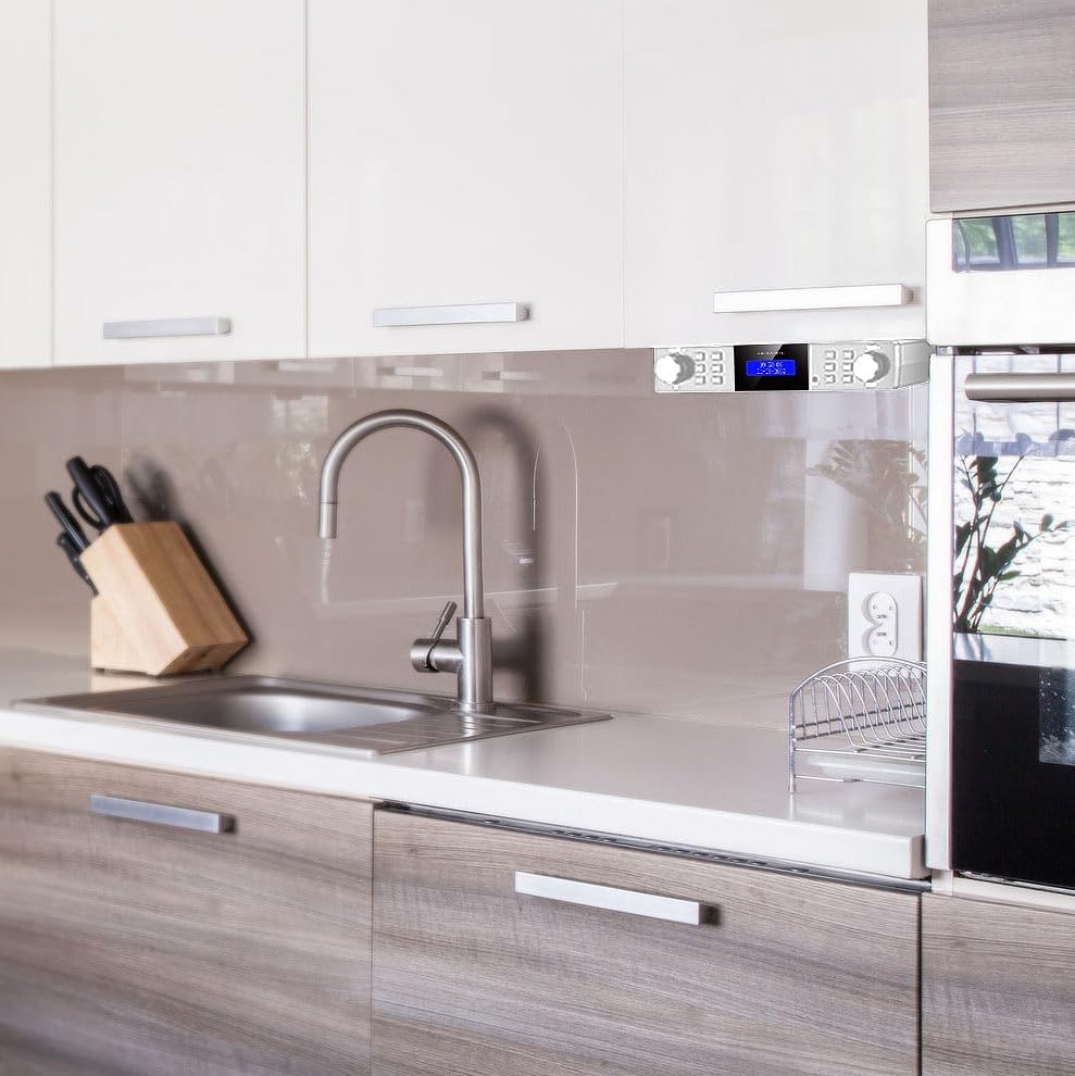 - Je 20 Sender-Speicher für DAB+ und UKW: Lieblingssender auf Knopfdruck hören • Weckfunktion mit 2 Alarm-Zeiten, Küchentimer mit 2 Zeiten • Befestigung an Hängeschränken oder zum bequemen Aufstellen per Standfuss • RDS zeigt Informationen zu