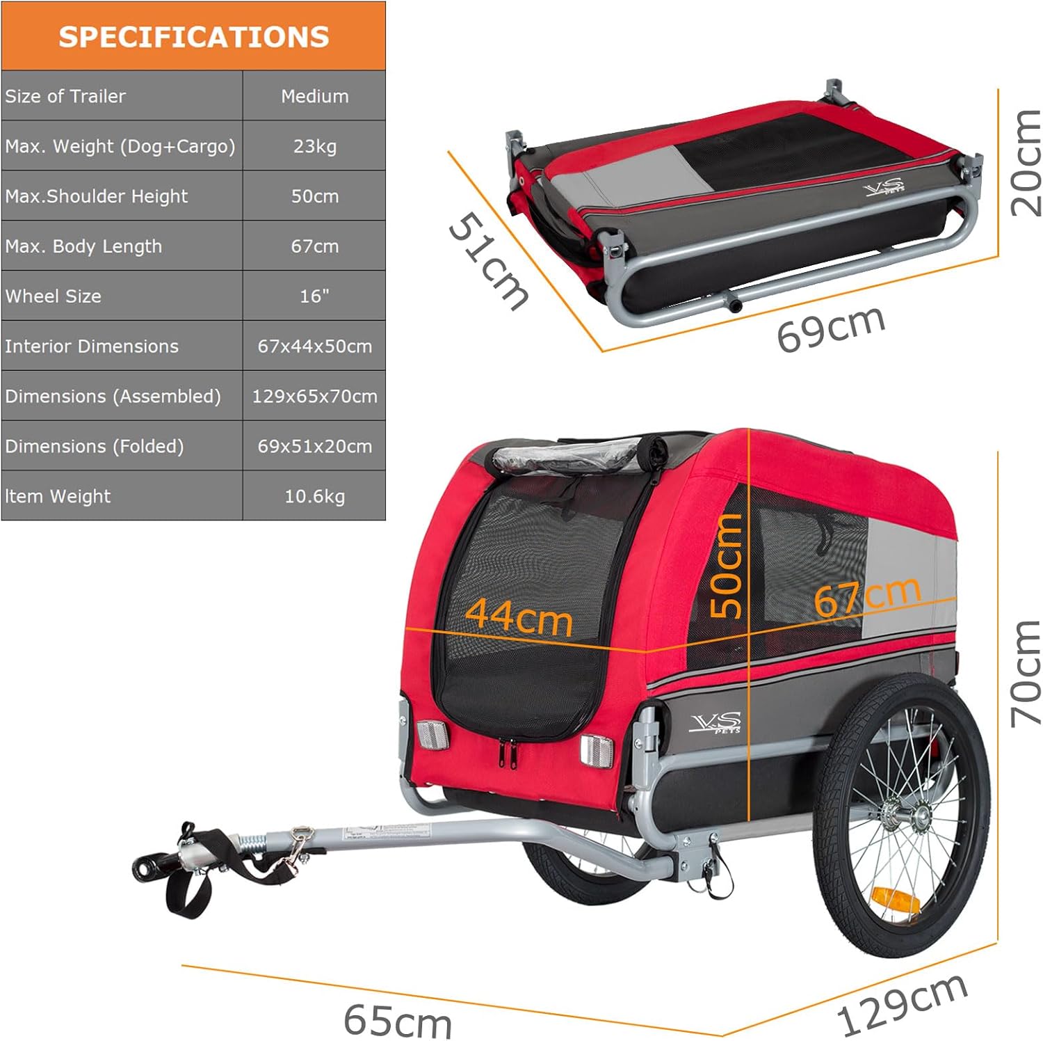 - Geeignet für kleine und mittelgrosse Hund - Maximale Schulterhöhe des Hundes: 48 cm - Maximale Zuladung: 30 kg - Abmessungen innen: 67 cm x 43 cm x 50 cm (LxBxH) - Masse zusammengebaut: 121 cm x 62 cm x 71 cm (LxBxH) - Masse zusammengeklappt: 69 cm x