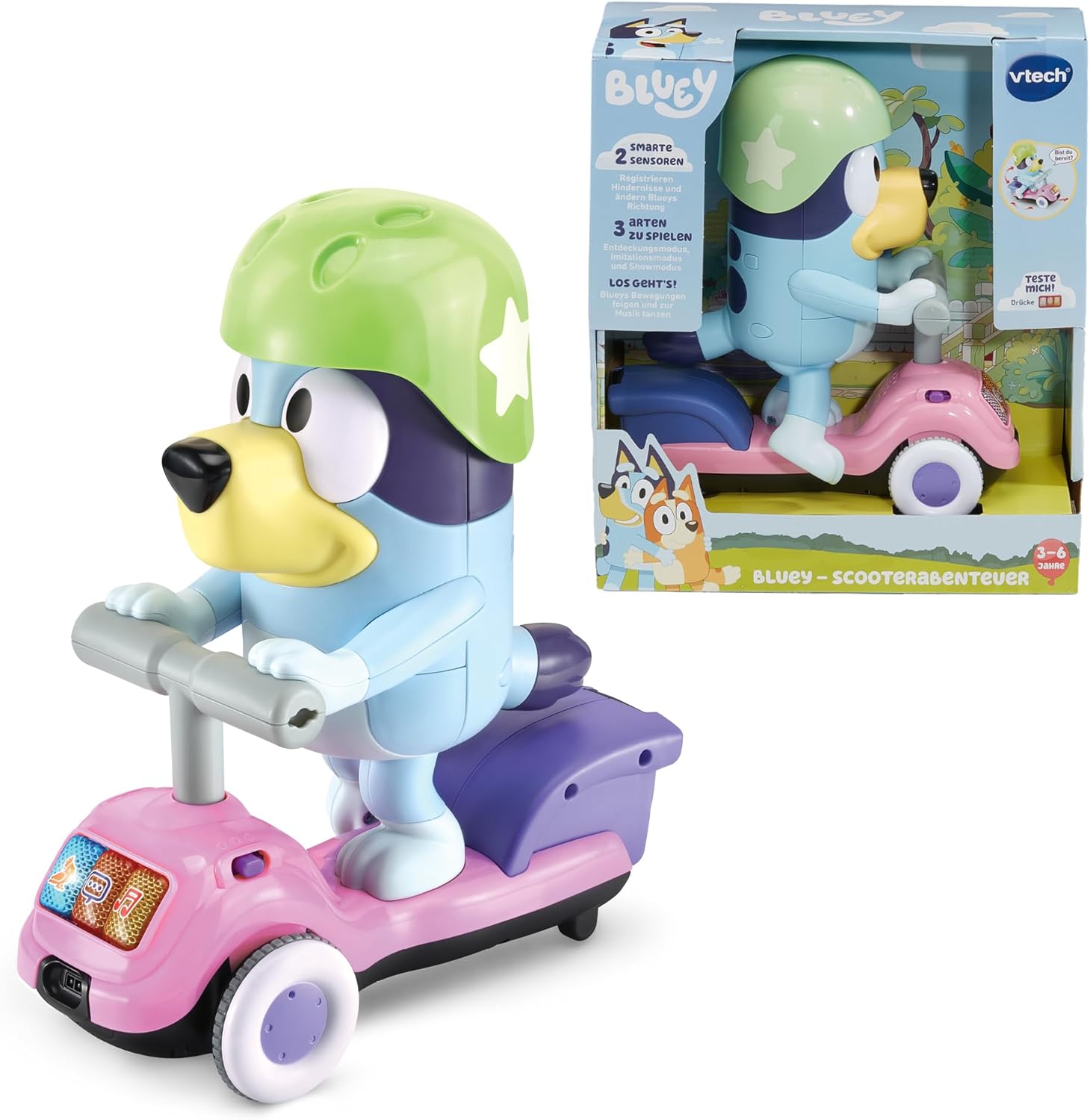 - Lieferumfang: 1 x VTech Bluey Scooterabenteuer / Deutsche Version / Alter: 3-6 Jahre / Kindersicheres Batteriefach und Abschaltautomatik / 4 x AA Demobatterien / Art. Nr.: 80-563804