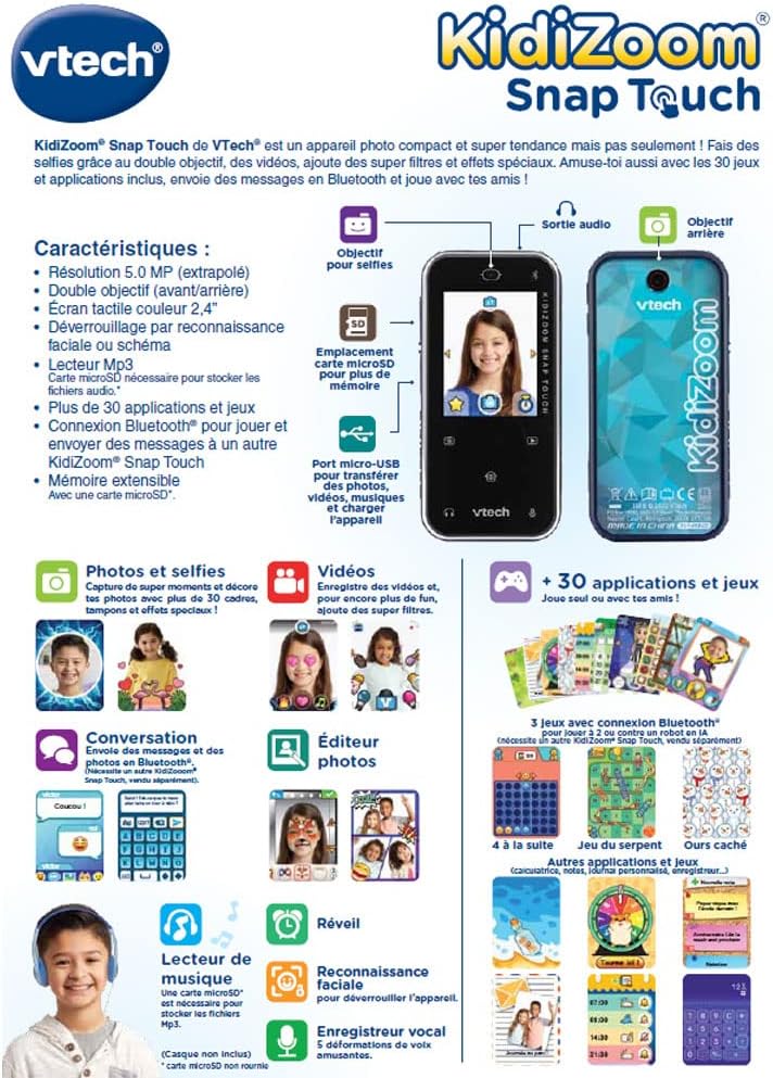 • Bluetooth: Dank seiner Bluetooth-Funktion kann das Kind mit seinen Freunden auf einem anderen KidiZoom Snap Touch (bis zu 10 m Entfernung) kommunizieren und spielen