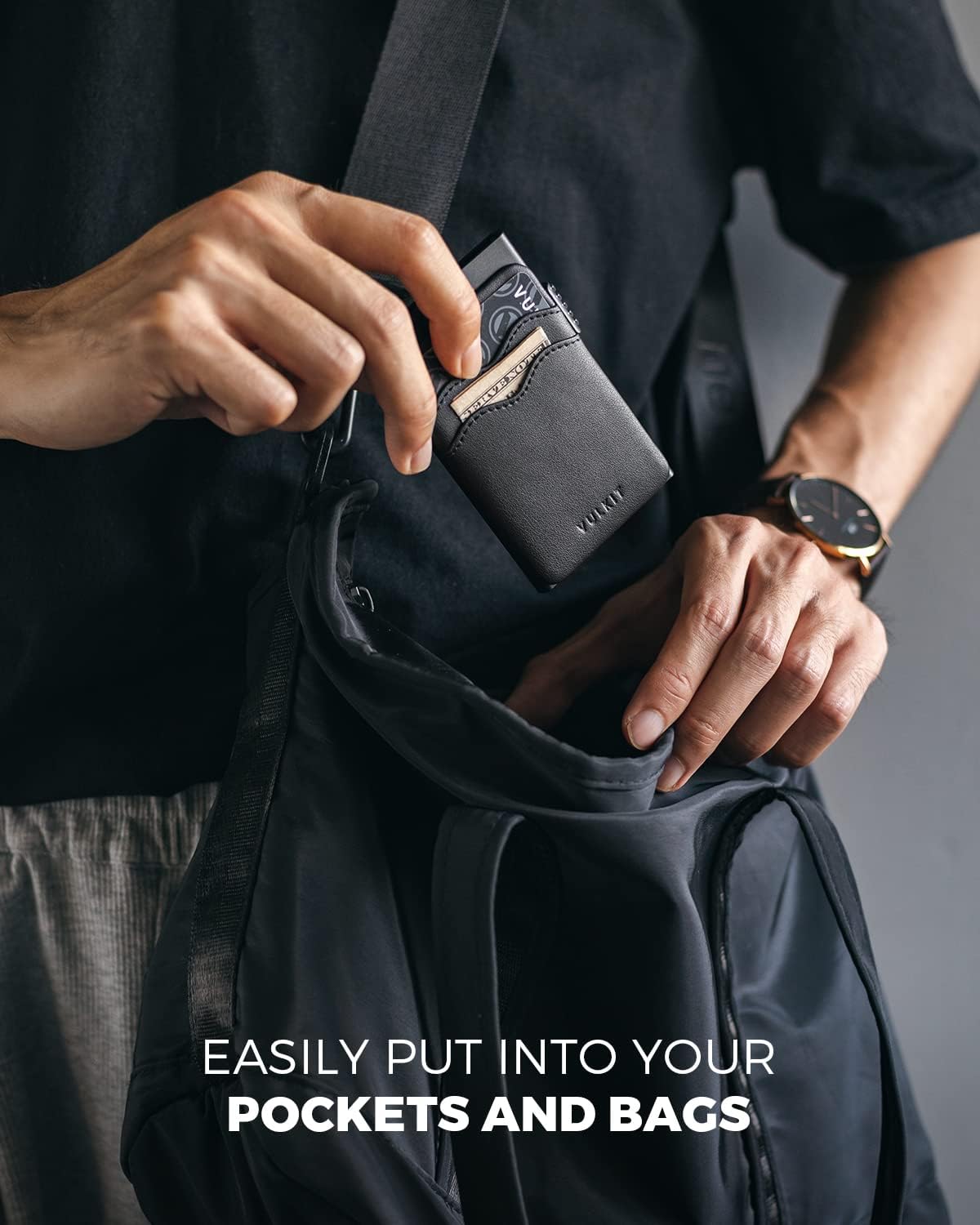 - Schneller Zugriff: Die doppelten Lederschlitze aussen ermöglichen einen schnellen Zugriff. Es gibt genug Platz für 1-2 Karten und ein wenig Carsh ermöglicht es Ihnen, Ihre Gegenstände leicht zu klassifizieren.