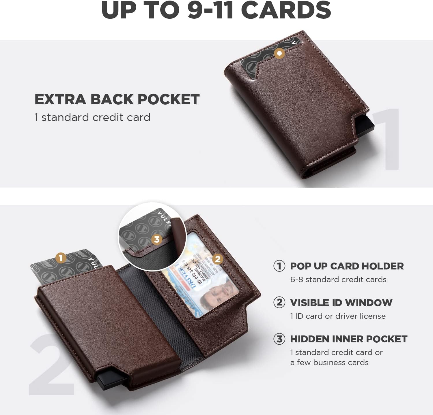 - TÄGLICHE KAPAZITÄT – Der aufklappbare Kartenhalter aus Metall im minimalistischen Stil bietet Platz für 8 flache Karten oder 6 geprägte Karten.