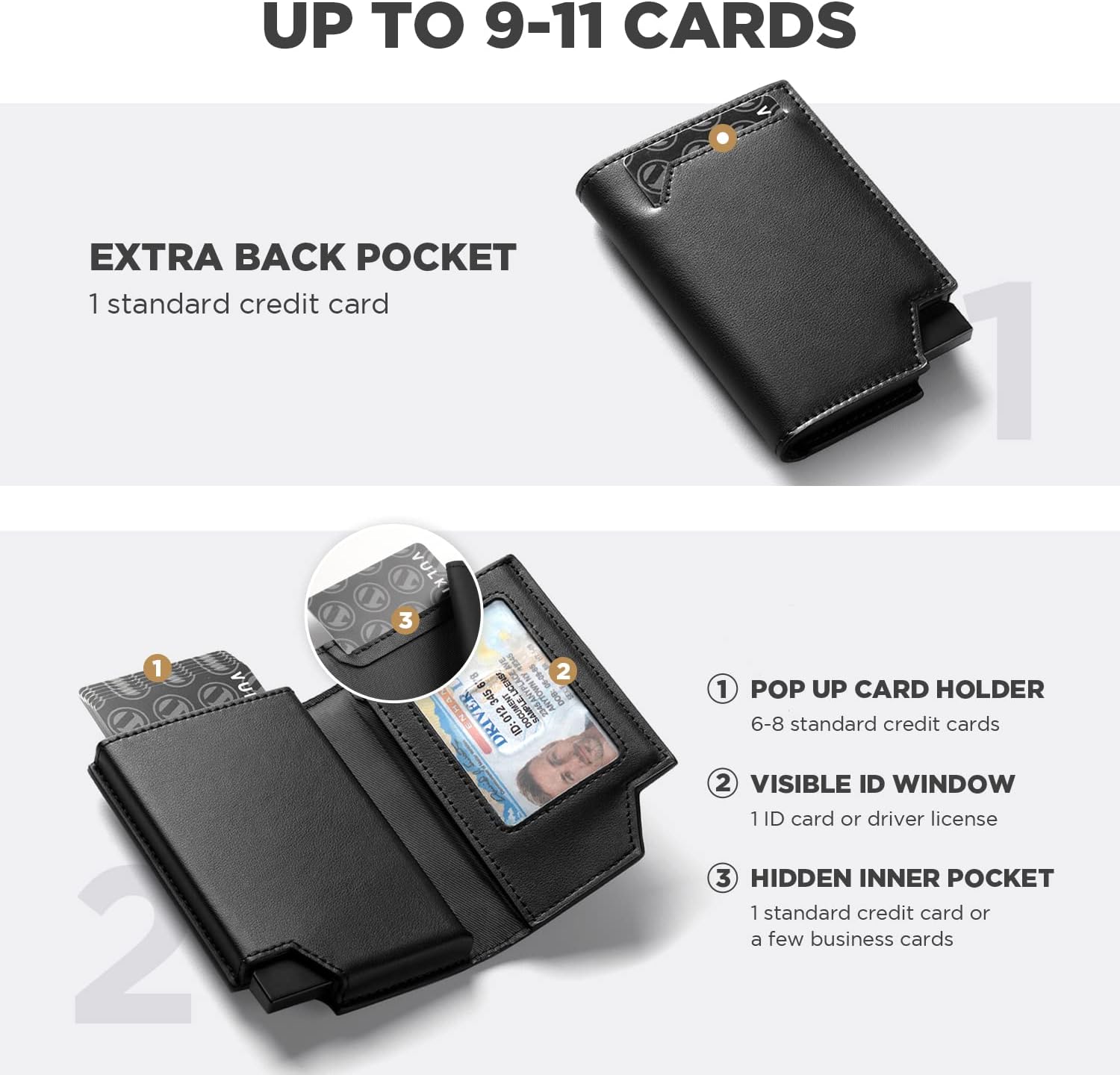 - TÄGLICHE KAPAZITÄT – Der aufklappbare Kartenhalter aus Metall im minimalistischen Stil bietet Platz für 8 flache Karten oder 6 geprägte Karten.