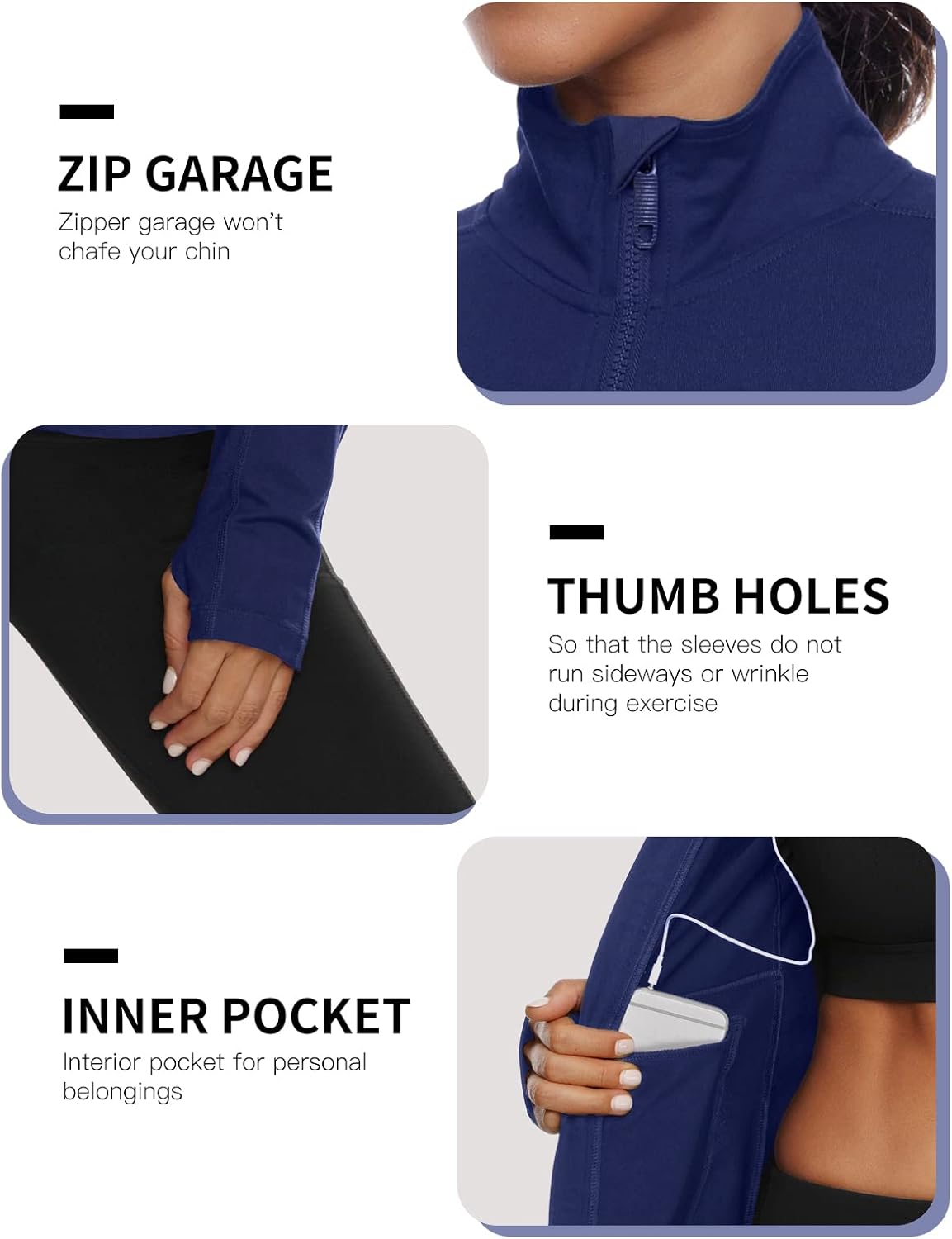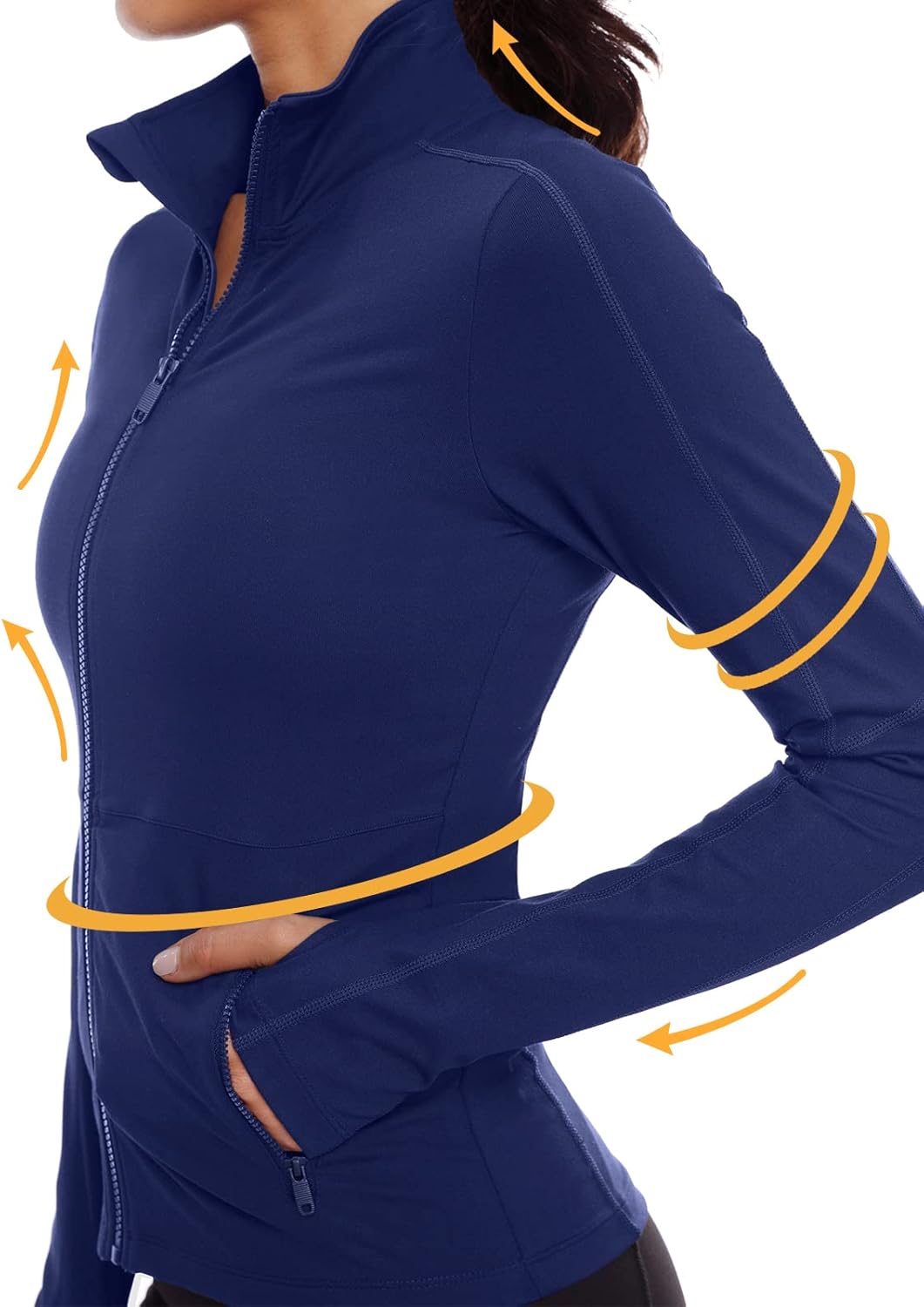 - [Warmes Halten]: passend für 5 ℃~15 ℃. Die Yogajacke besteht aus 4-Wege elastischem Material und bietet hautfreundliches, schweissableitendes, atmungsaktives und schnelltrocknendes Erlebnis.