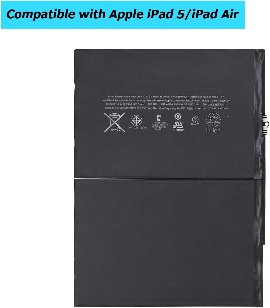 - Diese Batterie ist speziell für Netbook Pad Tablet iPad5, Air, Mini Air, A1474, A1475, MD785LL/A, MD786LL/A wie 6712-6700 Venice konzipiert, sie kann Ihre alte Batterie ersetzen, Tech-Skills können beim Austausch der Batterie gelten.
