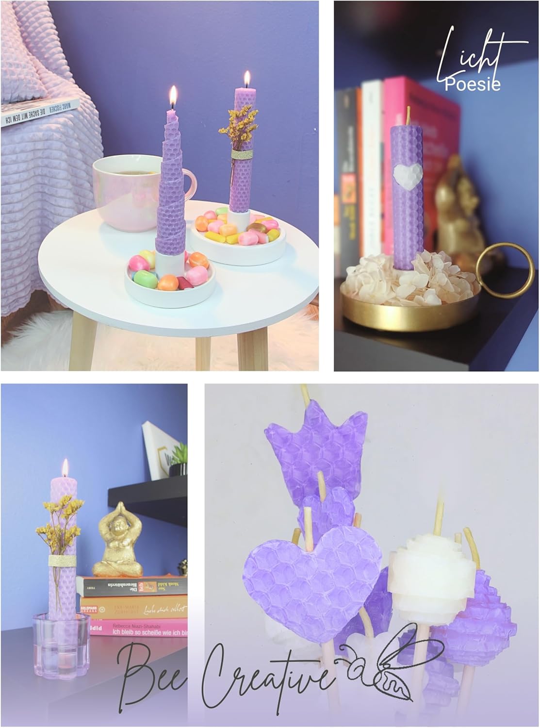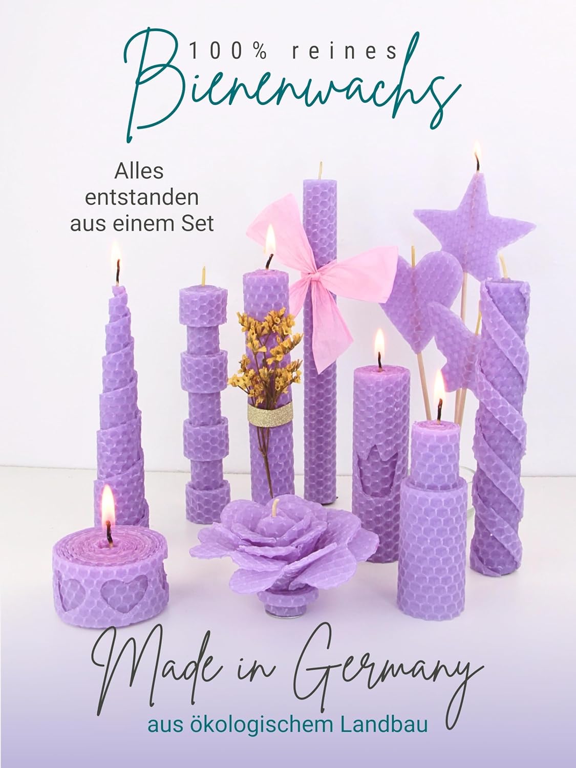 - 🕯️ DEIN KOMPLETTES STARTERSET FÜR 10 KERZEN – Alles drin, was Du brauchst: 10 farbige Bienenwachsplatten (20 × 15 cm), 10 vorgewachste Hanfdochte (21 cm Länge) und eine ausführliche, bebilderte Anleitung. Ideal, um sofort loszulegen – auch