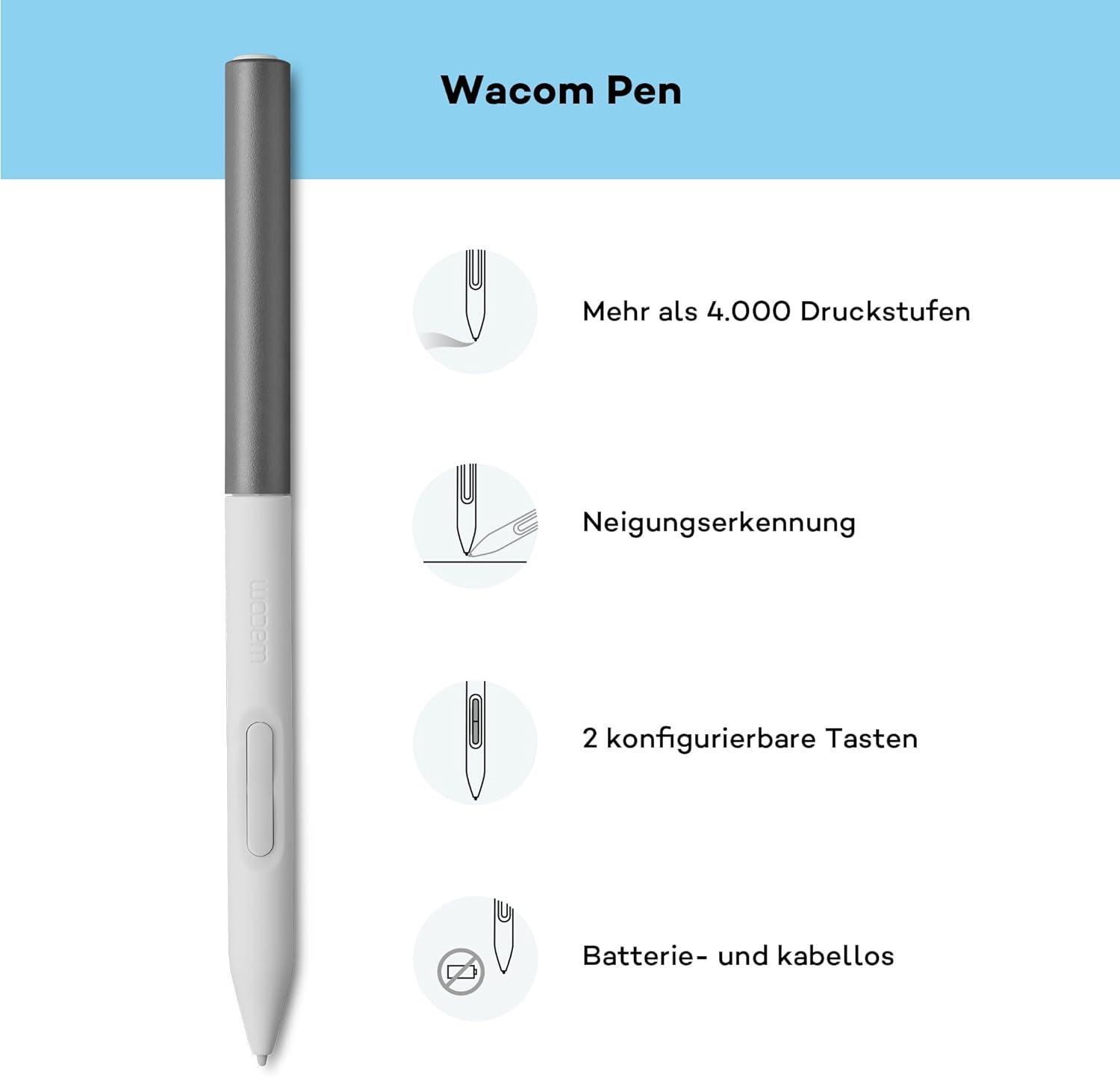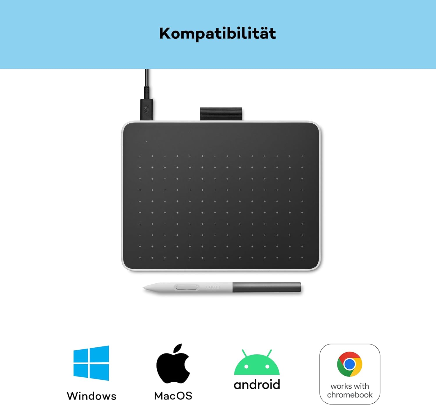 - Wacom One S Stifttablett, schlank und vielseitig, mit Bluetooth und natürlicher Stift-Eingabe. Perfekt für kreative Einsteiger, das Anfertigen von Notizen und digitale Unterschriften.