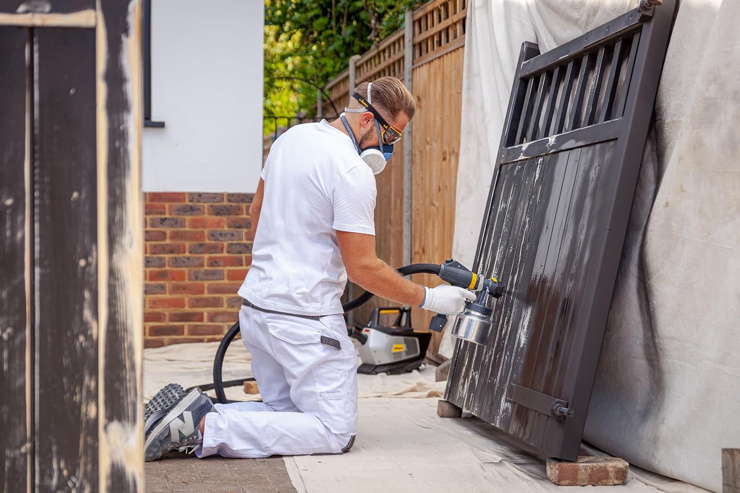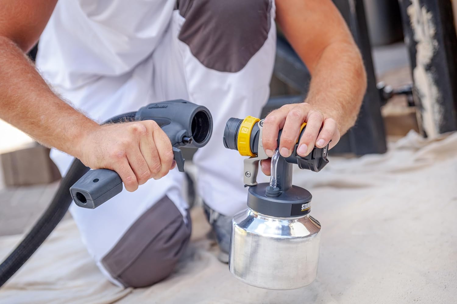 - XVLP-Spritzverfahren mit hohem Luftvolumen und niedrigem Luftdruck (bis 0,7 bar) für eine feine Materialzerstäubung und perfekte Oberflächen.