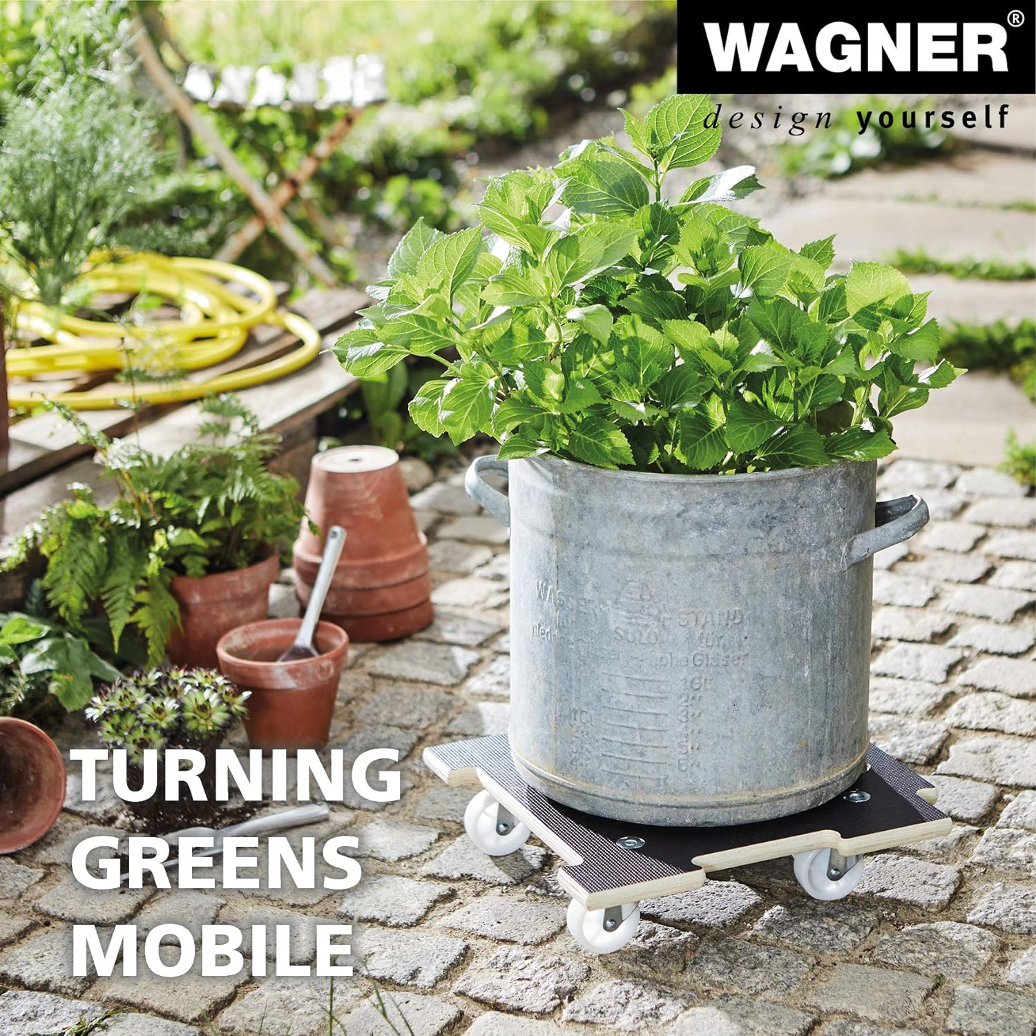 Wagner Pflanzenroller Maxigrip 39 x 39 x 10 cm I Kübelroller f. Aussenbereich + Innenbereich I Trans