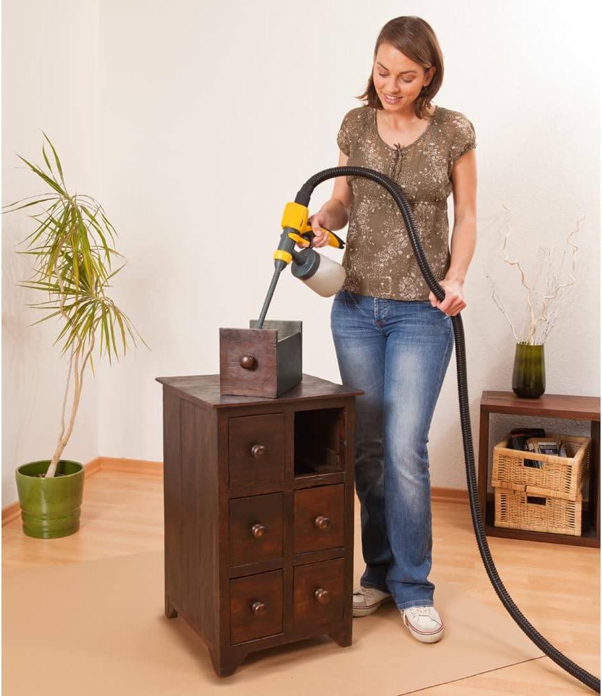 - Optimaler Sprühaufsatz für schwer erreichbare Stellen geeignet für alle dünnflüssige, lösemittel- und wasserbasierende Materialien wie z. B. Lacke, Lasuren, Holzschutzmittel, Grundierungen und Öle