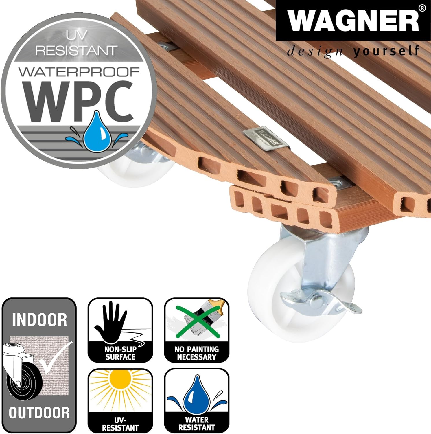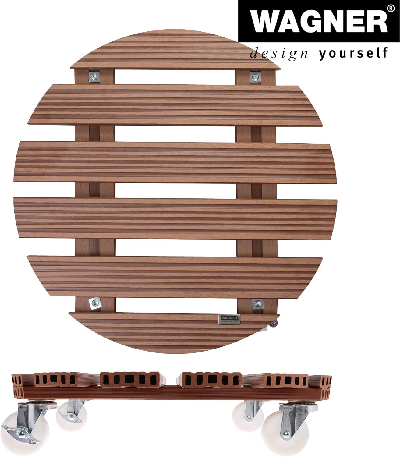 Wagner Pflanzenroller WPC Ø 50 x 11 cm I Blumenroller für Aussenbereich + Innenbereich I Kübelroller