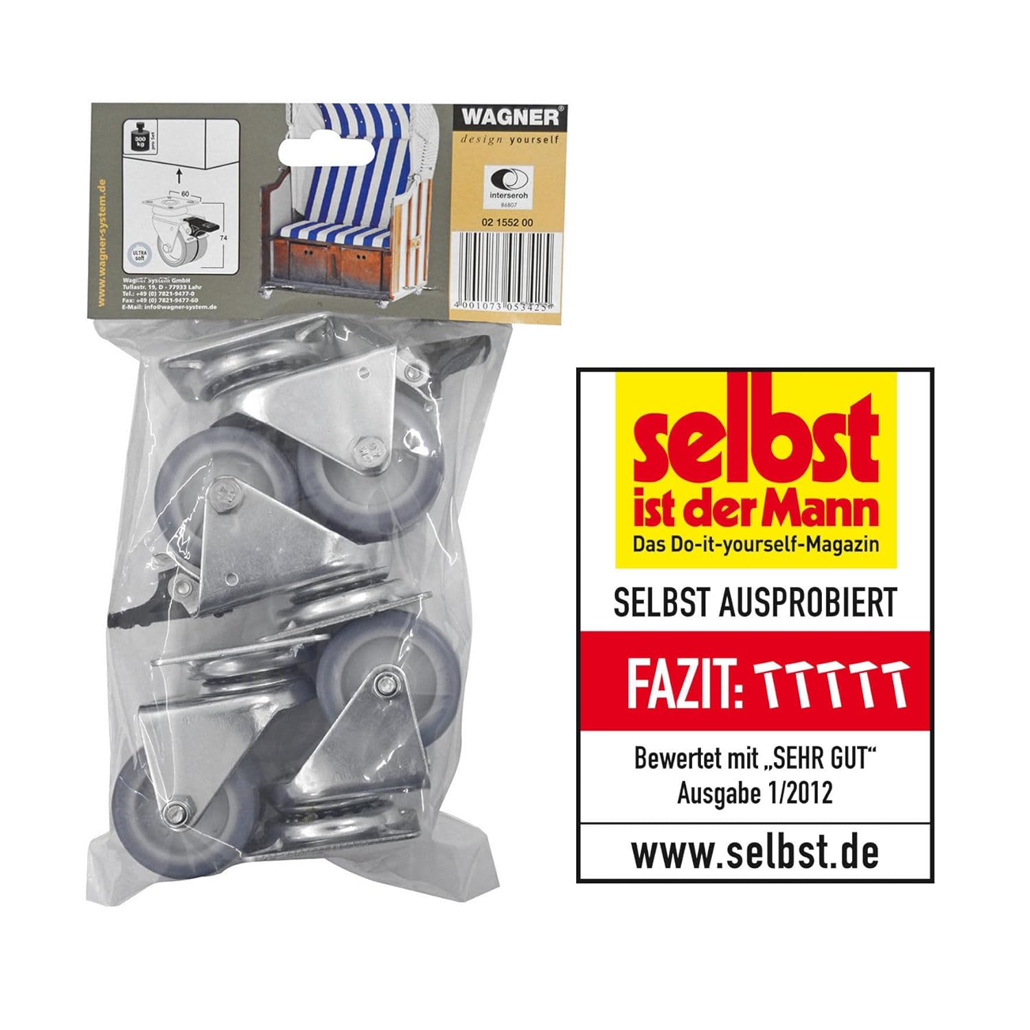 - Lieferumfang: 1 x 4tlg Set aus 2 x Strandkorb-Doppelrolle ohne und 2 x Strandkorb-Doppelrolle mit Bremse RO 1552