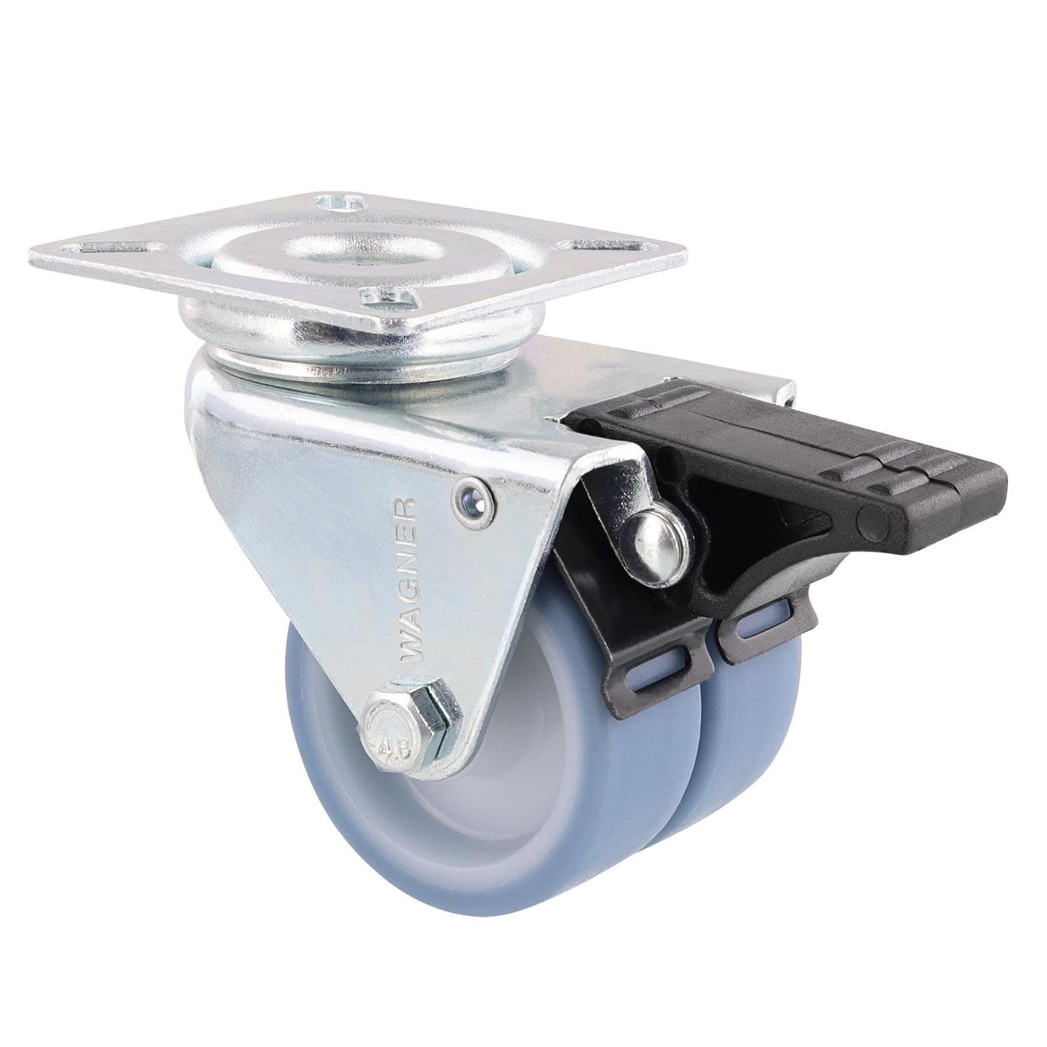 - Raddurchmesser Ø 50 mm, Doppelräder Radbreite 2x 20 mm, Bauhöhe 75 mm, mit Anschraubplatte 60 x 60 mm, Gesamttragkraft 300 kg
