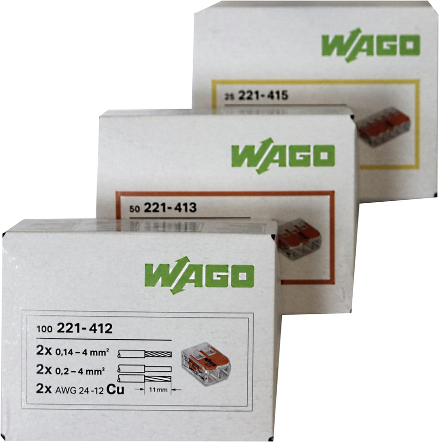 Wago 221 Klemmen SET 100x 221-412, 50x 221-413, 25x 221-415 | Kabel Verbinder - Original WAGO, orang