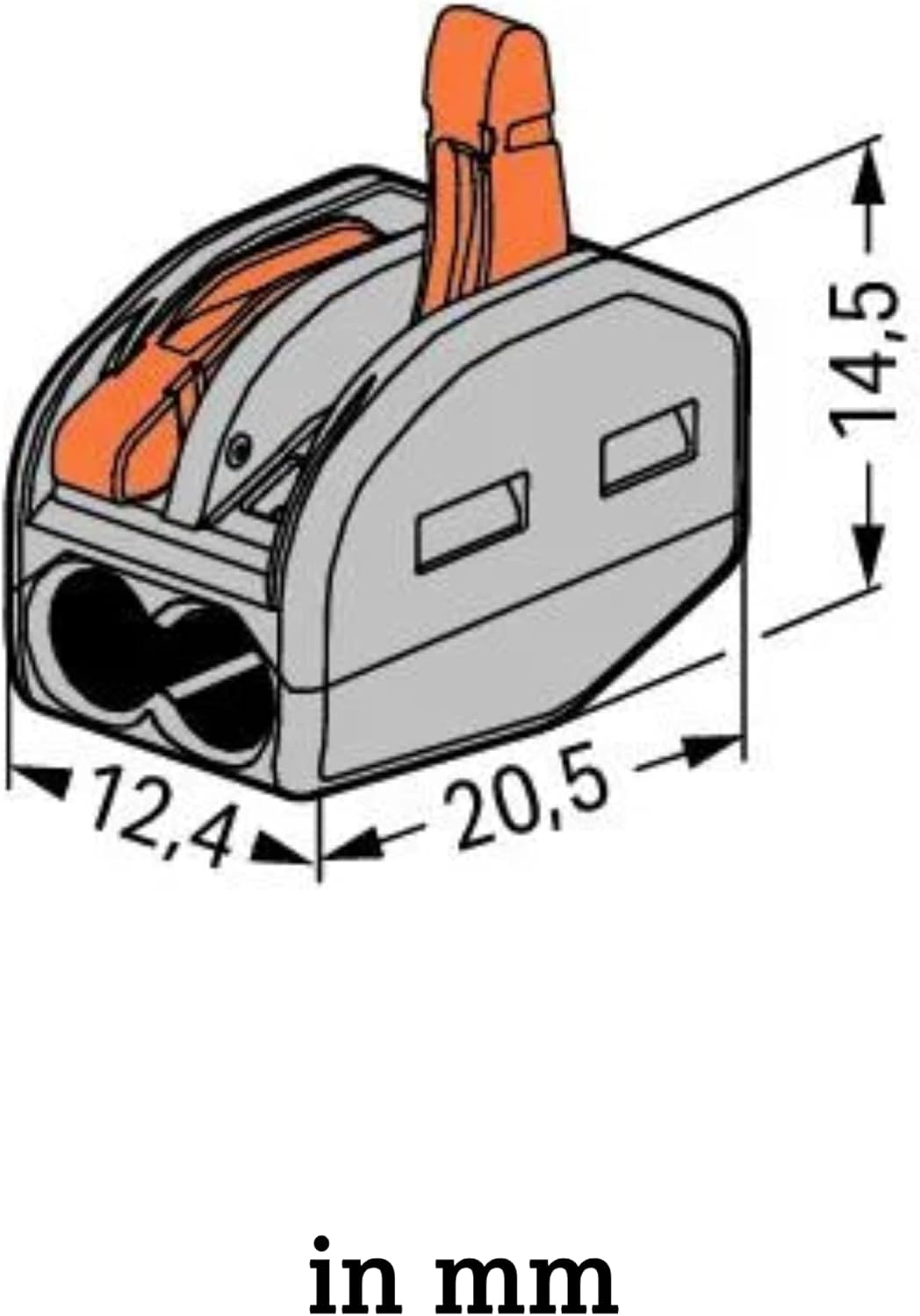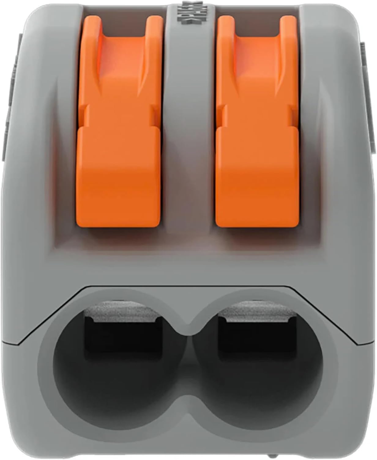 - Produkt 2: EINFACHE HANDHABUNG: Kompakte WAGO Verbindunsklemme mit 2 Klemmstellen, graues Gehäuse und Prüföffnungen; Zeitersparnis durch einfache Anwendung - Hebel auf, Leiter rein, Hebel zu