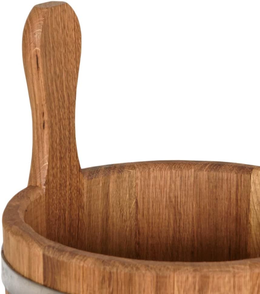 - 🌳 Haltbares Material: Gefertigt aus sehr haltbarem Eichenholz, bietet der Kübel eine lange Lebensdauer und Stabilität, was besonders wichtig in der feuchten Saunaumgebung ist.