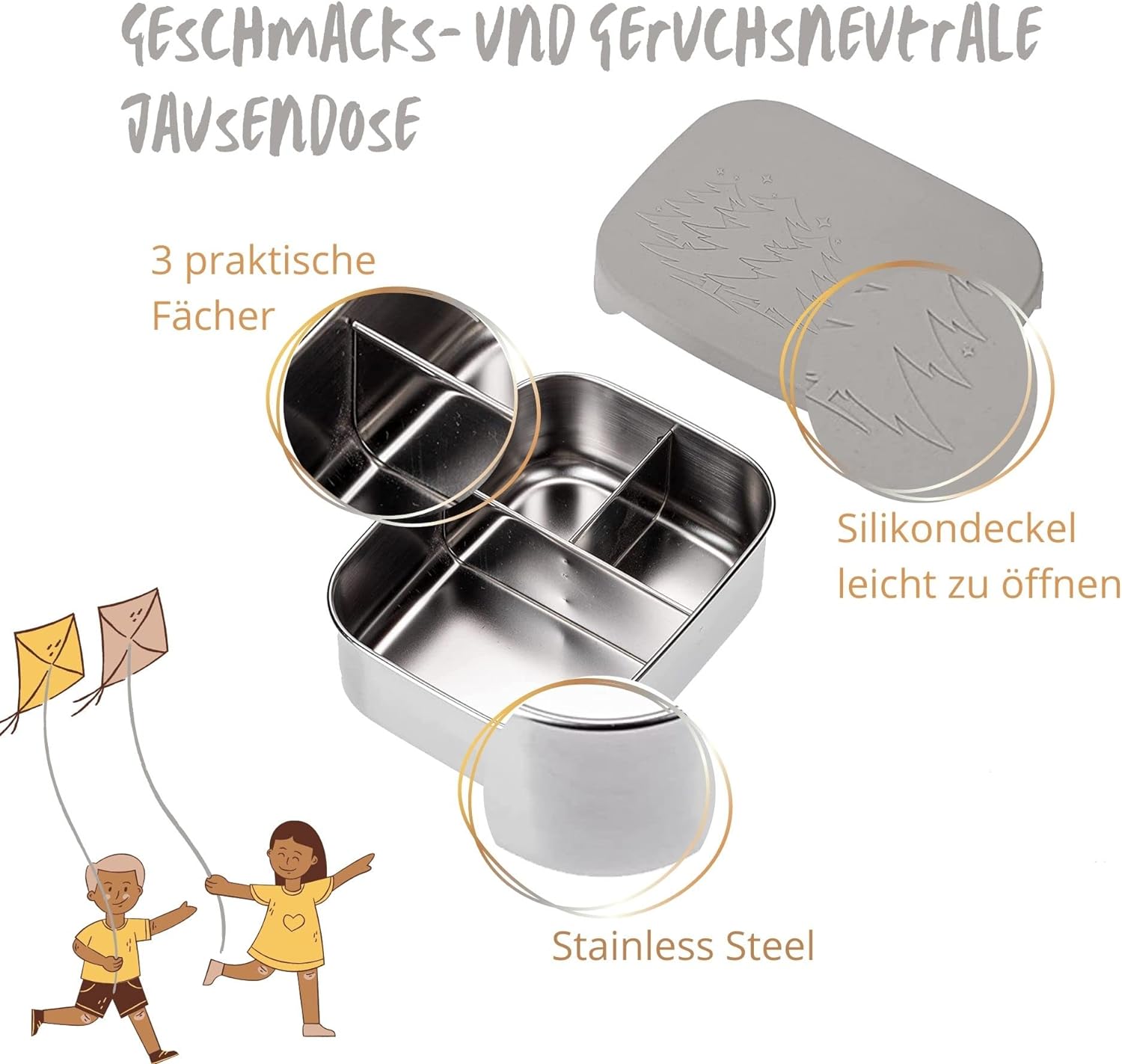 Wald The green choice Edelstahl Lunchbox, Jausendose, Brotdose, Jausenbox mit Silikondeckel, leicht
