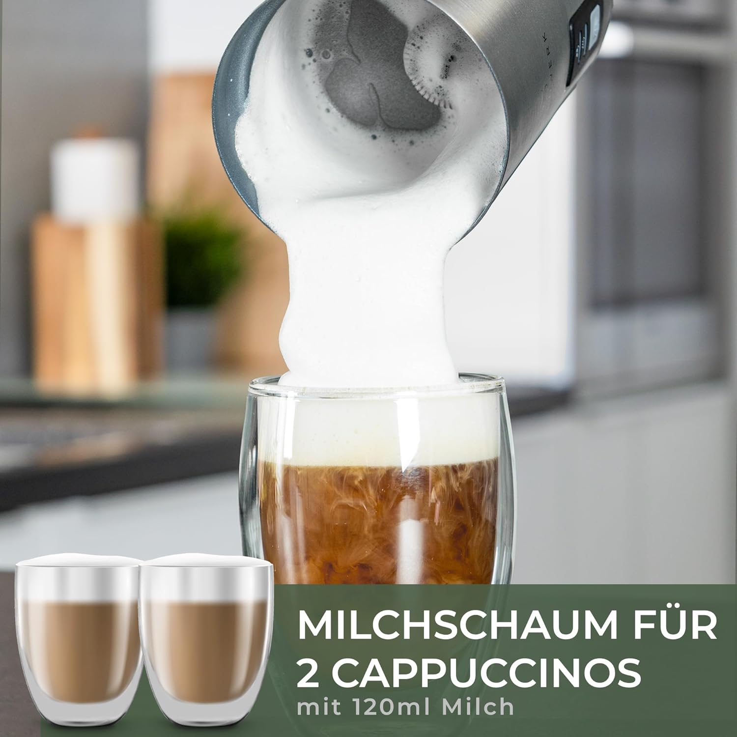 • ✅ 3 FUNKTIONEN - heisser Milchschaum, kalter Milchschaum und Milch aufwärmen. Mit der Funktion “Milch aufwärmen” lässt sich auch leckere heisse Schokolade zubereiten.