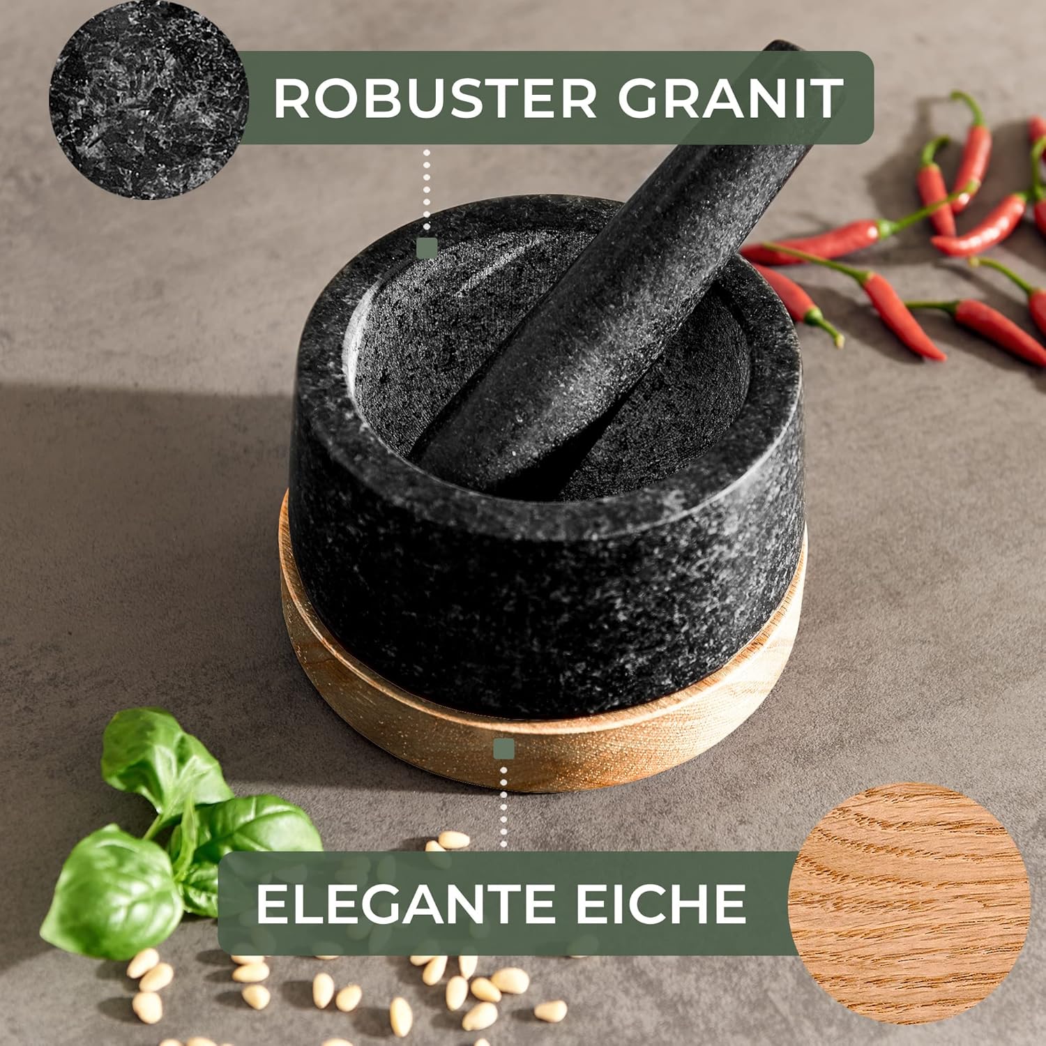 - 🌿 EIN ECHTER BLICKFANG - Die hochwertige Eichenholzbasis schont deine Arbeitsplatte vor Kratzern. Zusätzlich präsentiert sie deinen WALDWERK Mörser als ein absolutes Schmuckstück in deiner Küche.