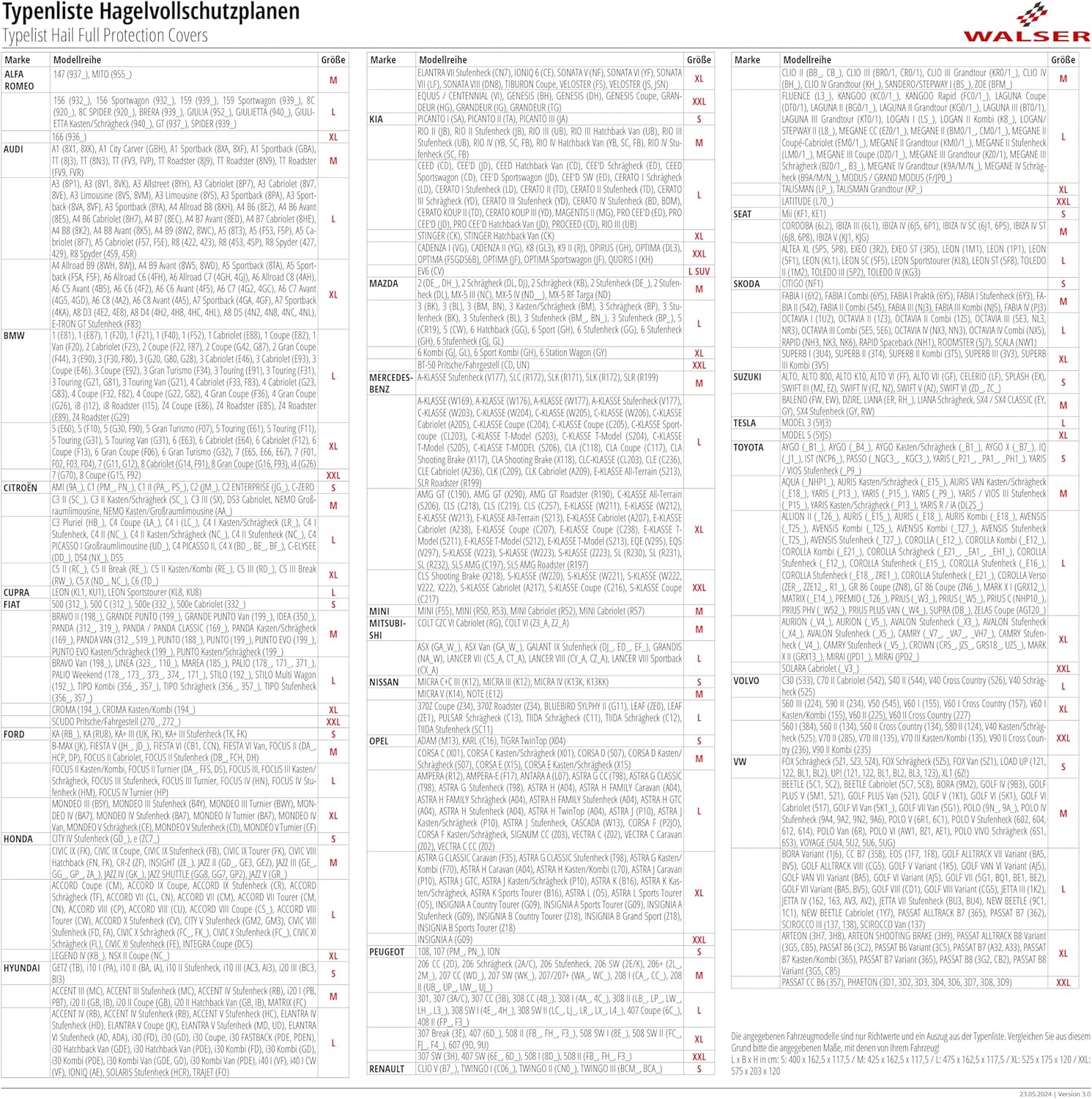 - Hagelschutz: WALSER Autoplane Hagelschutz Vollgarage: Hagelschutz senkrecht bis zu 70 km/ h, Durchmesser Hagelkörner ca. 11 mm.