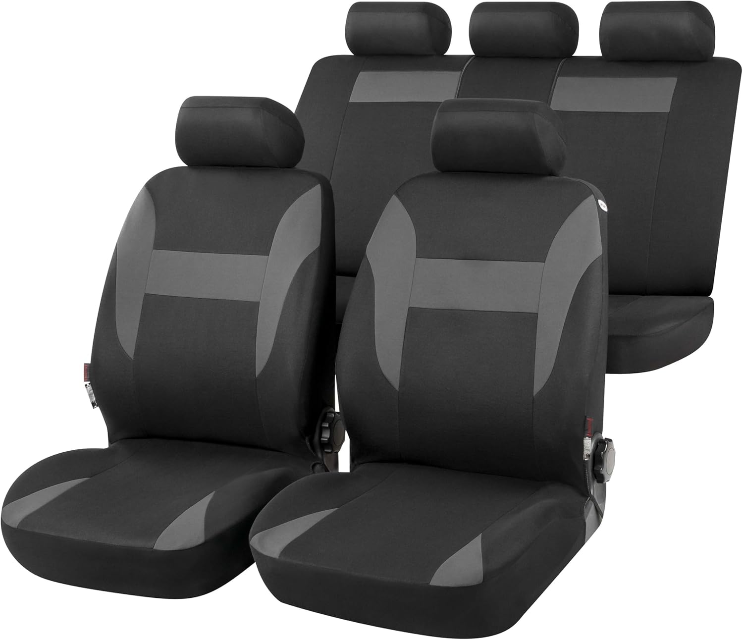 - Lieferumfang: 2 Vordersitzbezüge 2tlg, 1 Rücksitzbezug 4tlg, 5 Kopfstützenbezüge