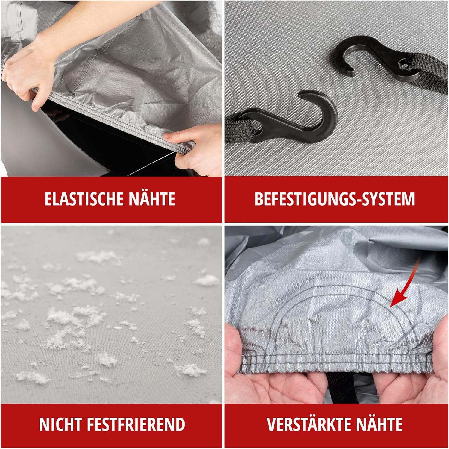 - Einfach zu montieren - Die witterungsbeständige Abdeckung Auto Winter kann ganz einfach und schnell montiert werden. Nach Überziehen sorgen robuste Gummibänder und elastische, verstärkte Nähte für sicheren Halt - auch bei starkem Wind und widrigen
