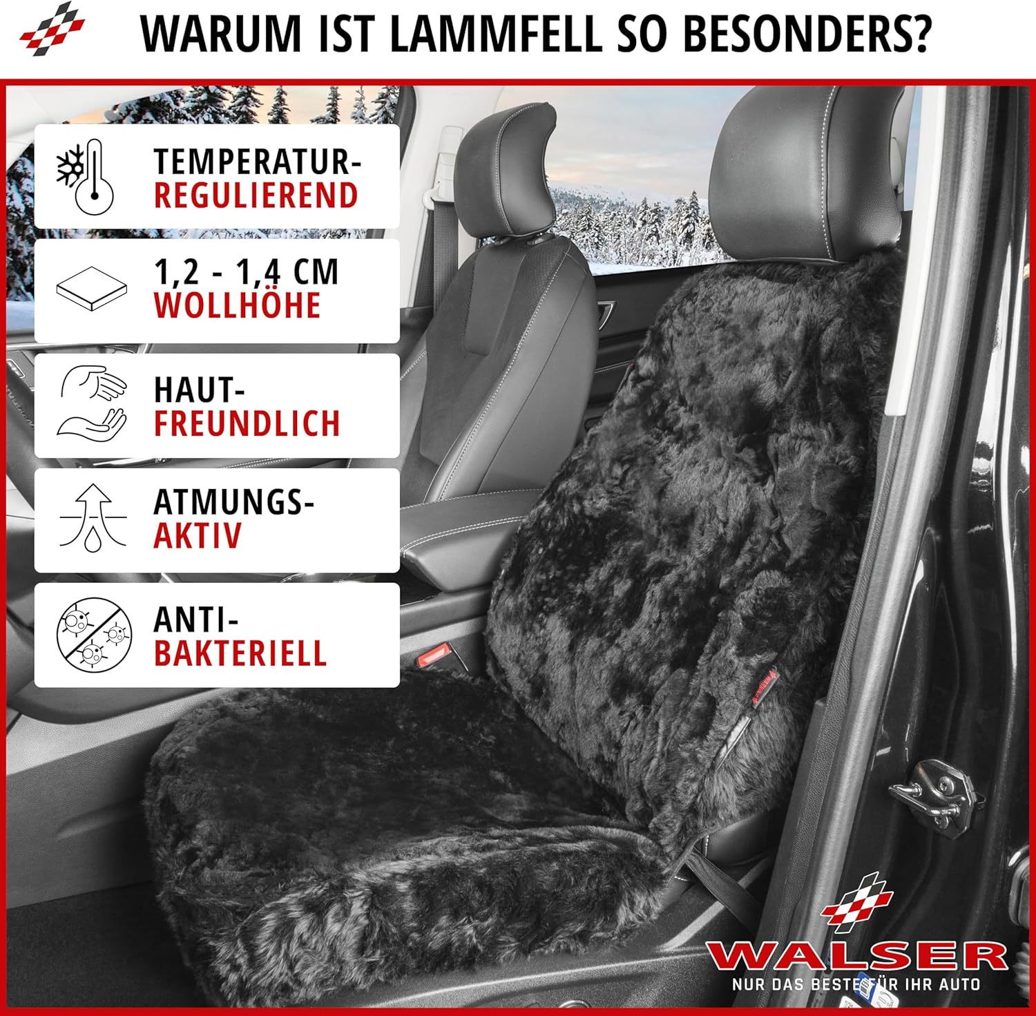 - WOHLFÜHL-PRODUKT: Der hochwertige WALSER Lammfellbezug Auto sorgt für maximalen Komfort im Auto. Der kuschelig, weiche Auto Lammfell Sitzbezug ist hautfreundlich, atmungsaktiv und wirkt temperaturregulierend. Der antibakterielle Fellbezug sorgt im