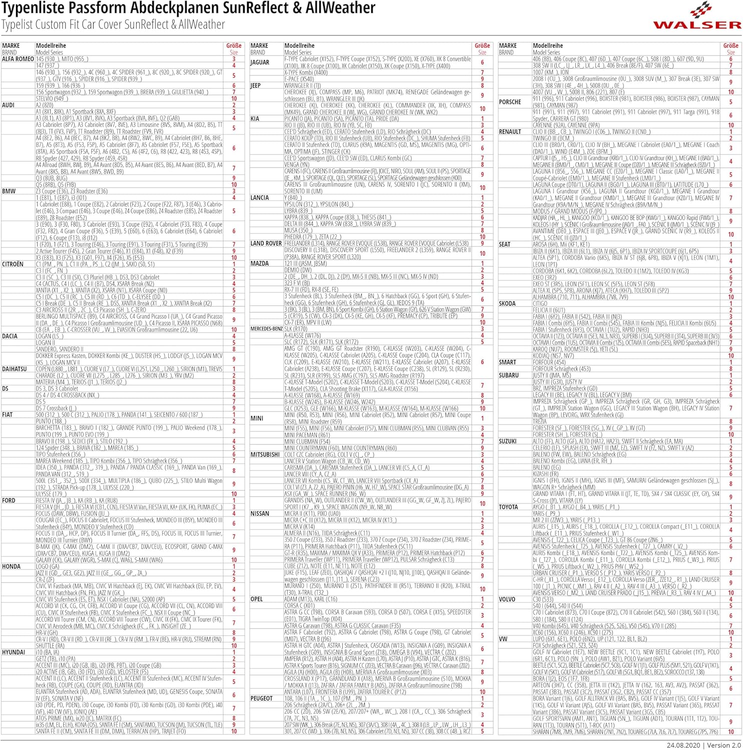 - Finden Sie jetzt die passende All Weather Autoplane für Ihr Auto - siehe Infobild (Typenliste)