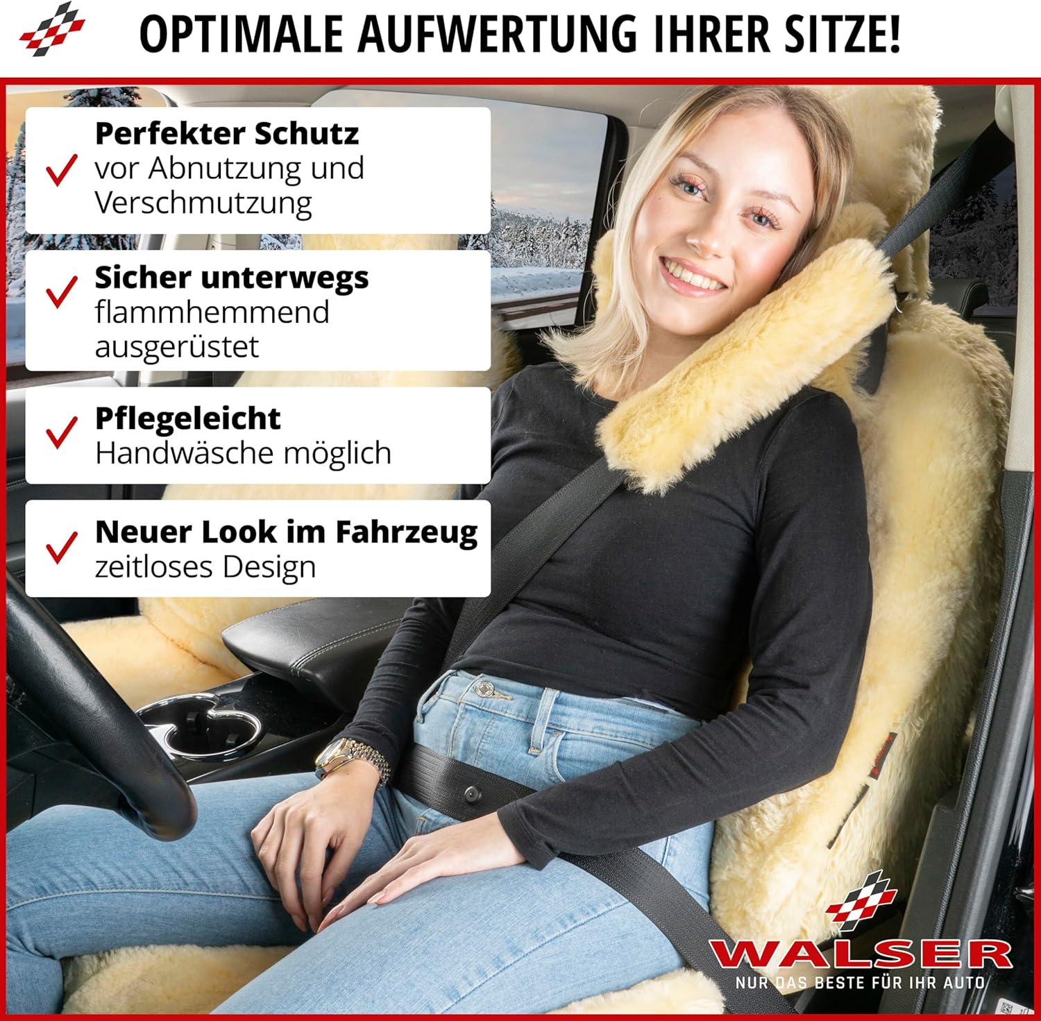 - WOHLFÜHL-PRODUKT: Der hochwertige WALSER Lammfellbezug Auto sorgt für maximalen Komfort im Auto. Der kuschelig, weiche Auto Lammfell Sitzbezug ist hautfreundlich, atmungsaktiv und wirkt temperaturregulierend. Als perfekte Kleinklimaanlage im Auto sorgt