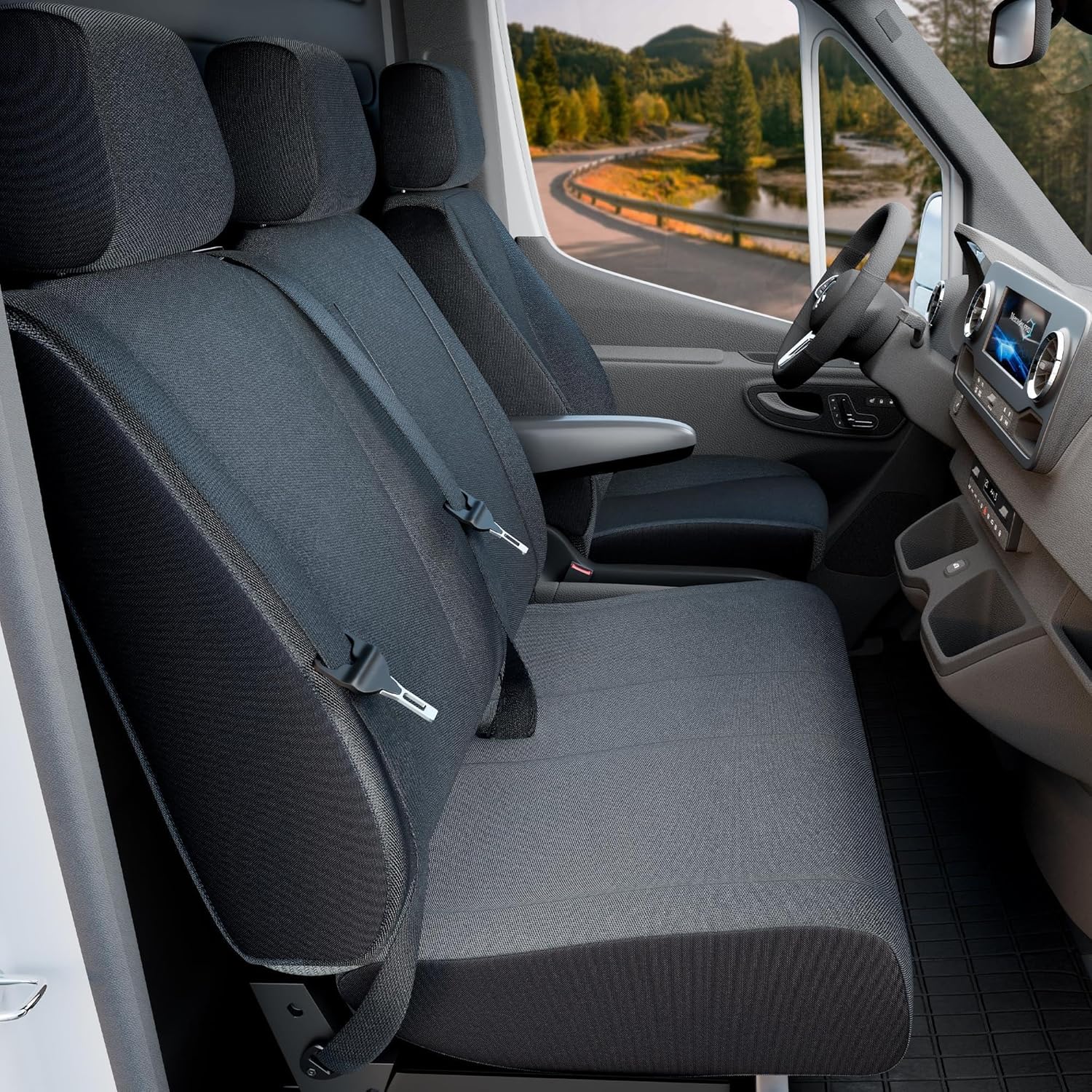 - Lieferumfang: 1 Einzelsitzbezug, 1 Doppelbankbezug, 3 Kopfstützenbezüge
