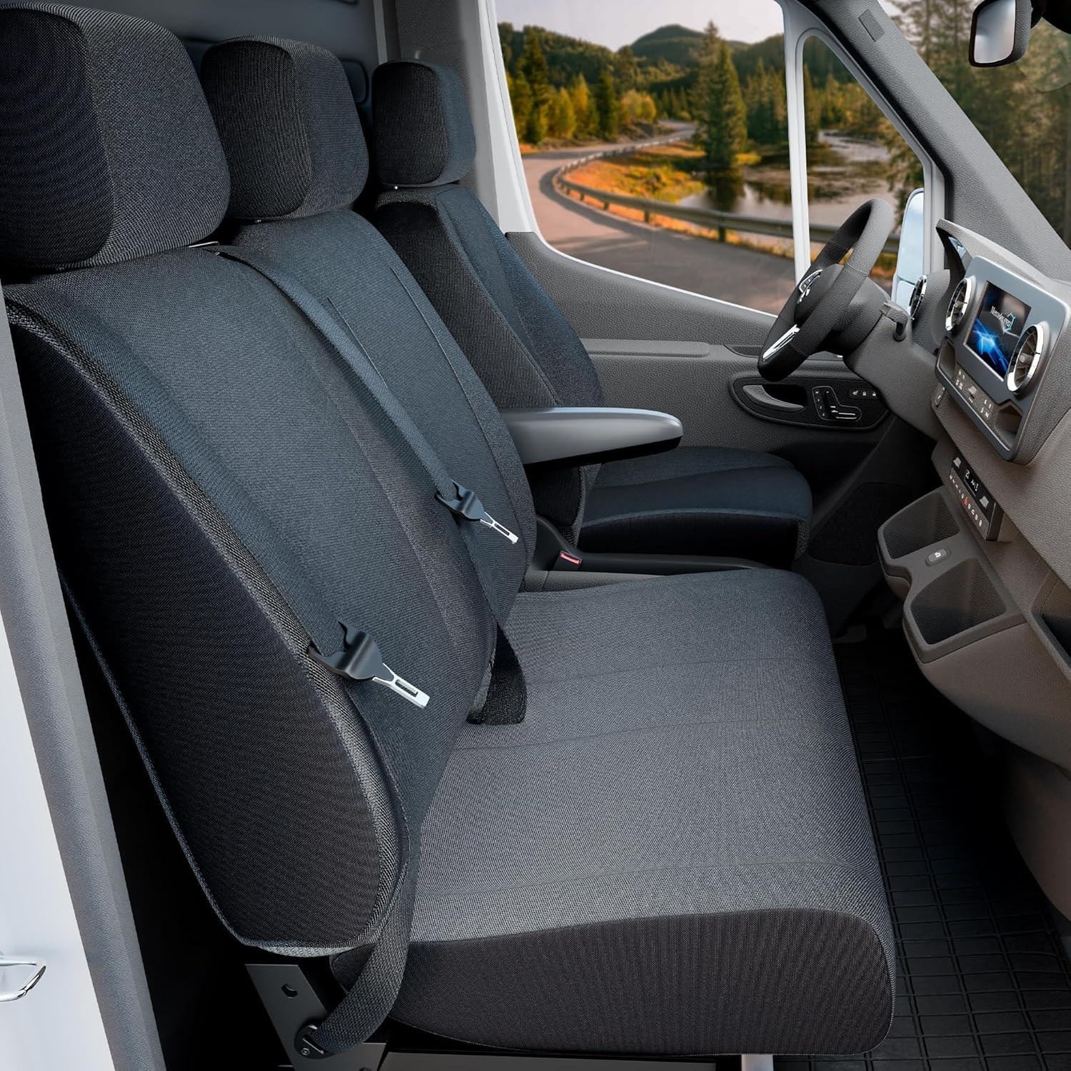 - Lieferumfang: 1 Doppelbankbezug vorne Sitzbank klappbar, 2 Kopfstützenbezüge