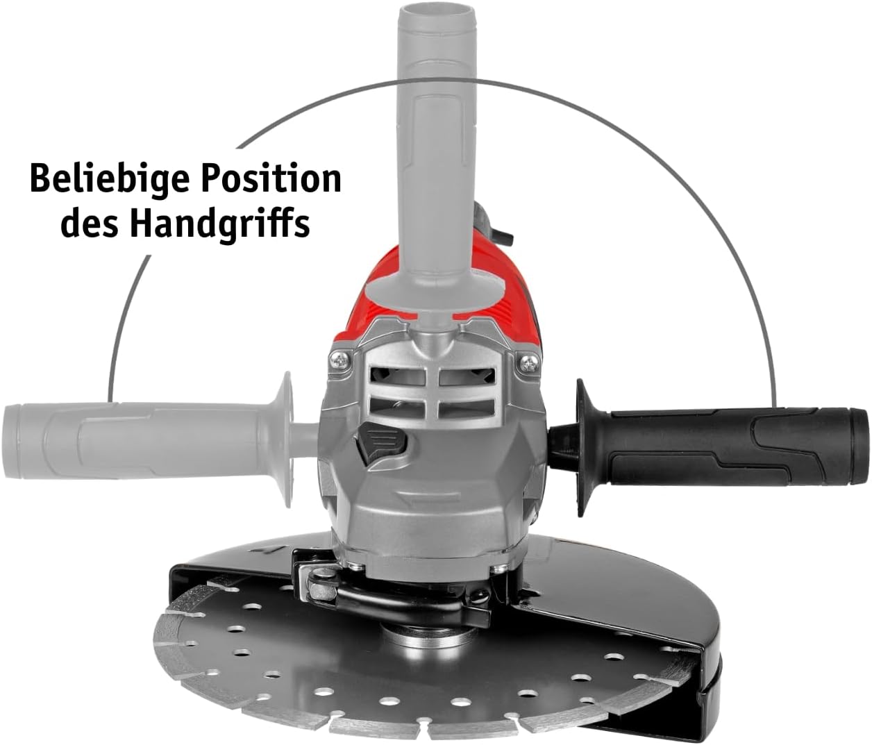 - Der verstellbare Handgriff und der mitgelieferte Zusatzhandgriff, der in drei Positionen montiert werden kann, bieten praktische Anpassungsmöglichkeiten für den Benutzer und ermöglichen eine komfortable Handhabung des Geräts.