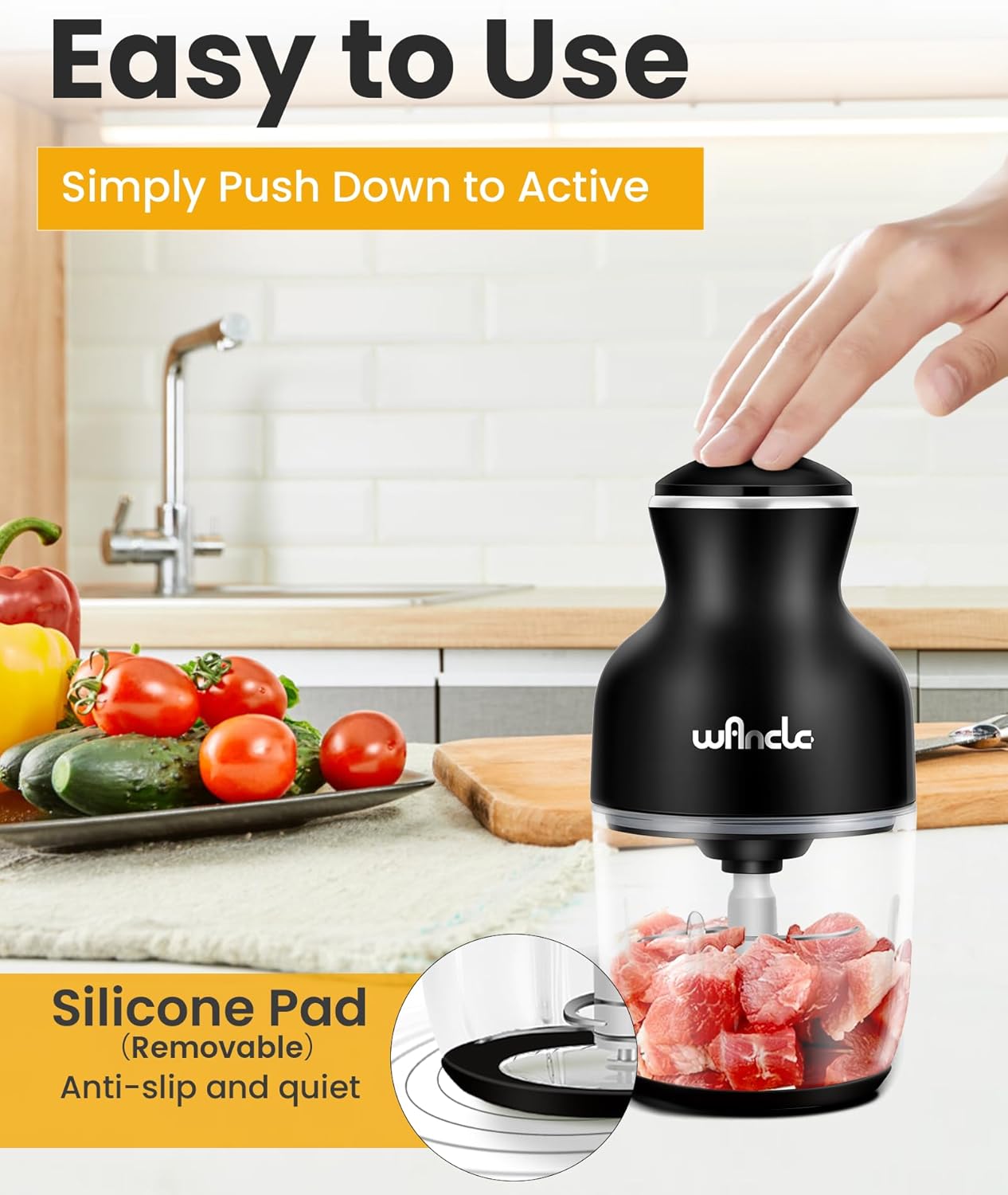 - ✅【Multifunktionskleiner Küchenhelfer】: Wancle Zerkleinerer ist nicht nur zum Zerkleinern von Fleisch, Gemüse, Obst und Nüssen geeignet, sondern auch zum Rühren, Ei schlagen und anderen Operationen, die Ihnen helfen, alle Arten von