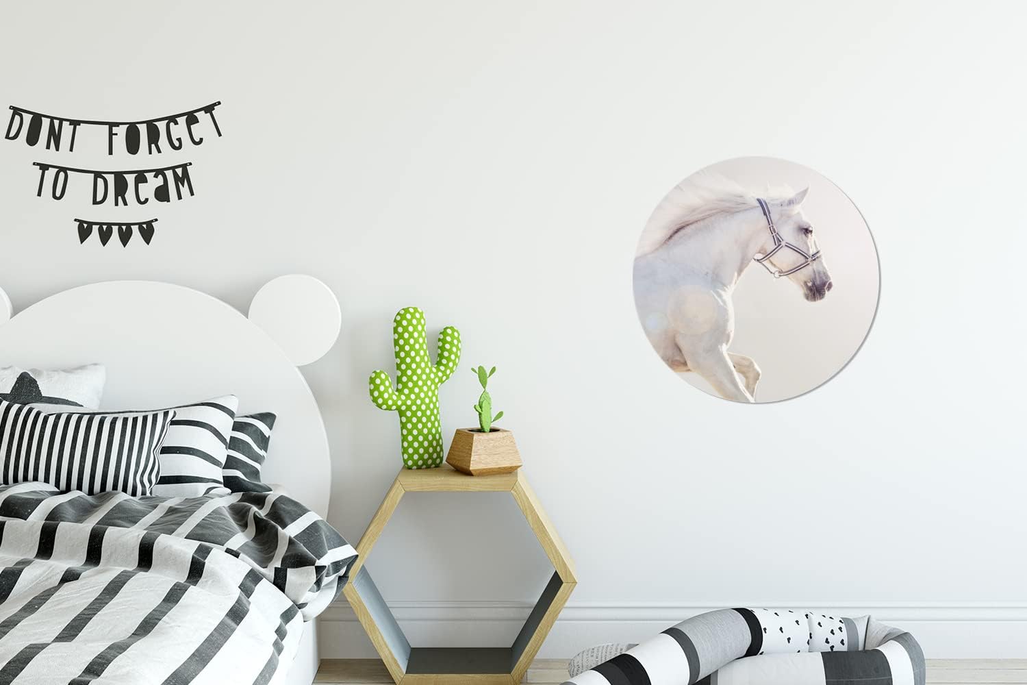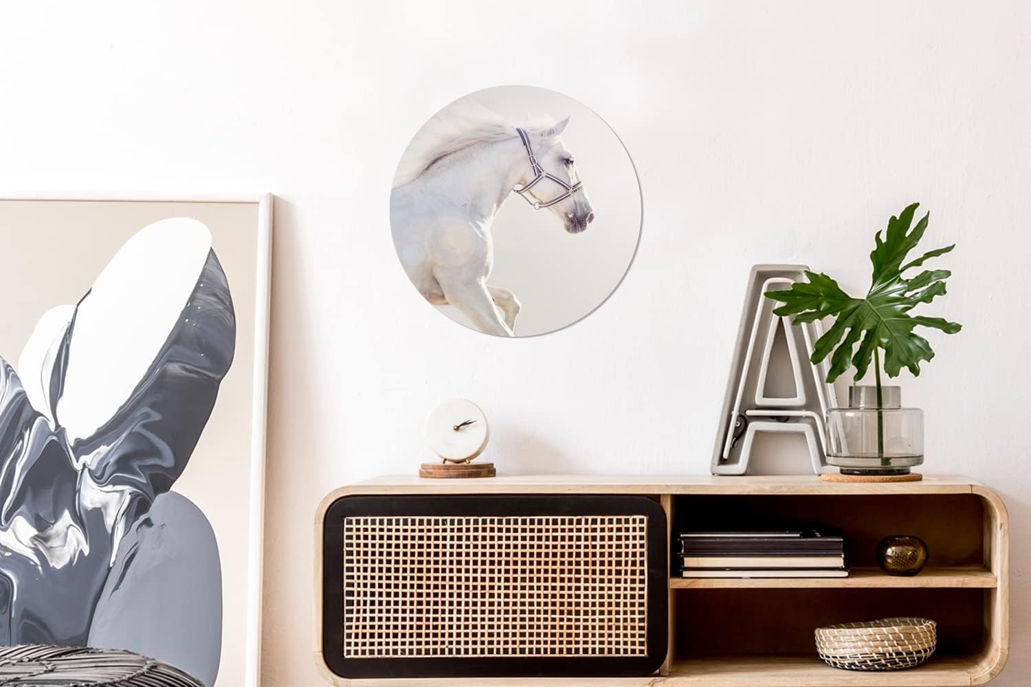 Wandbild Rund Wanddeko Deko Wohnzimmer Bilder 30x30 cm Pferd - Weiss - Mähne, 30x30 cm