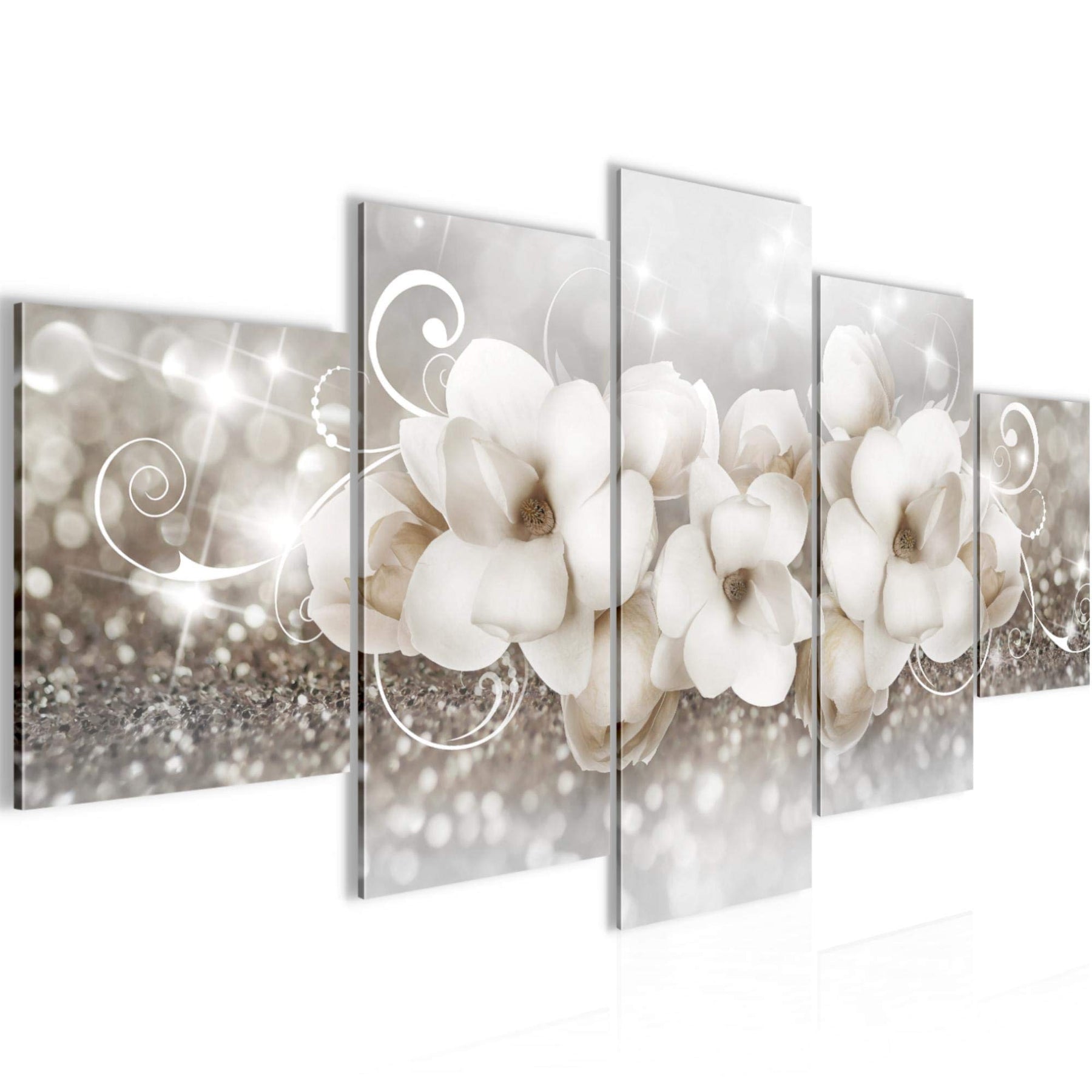 Runa Art Wandbilder Blumen Abstrakt 5 Teilig Bild auf Vlies Leinwand Deko Wohnzimmer 3D Effekt Beige