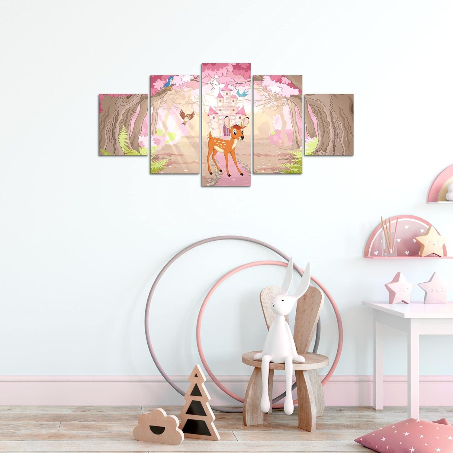Runa Art Wandbilder Kinderzimmer Waldtiere 5 Teilig Bild auf Vlies Leinwand Deko Babyzimmer Spielzim