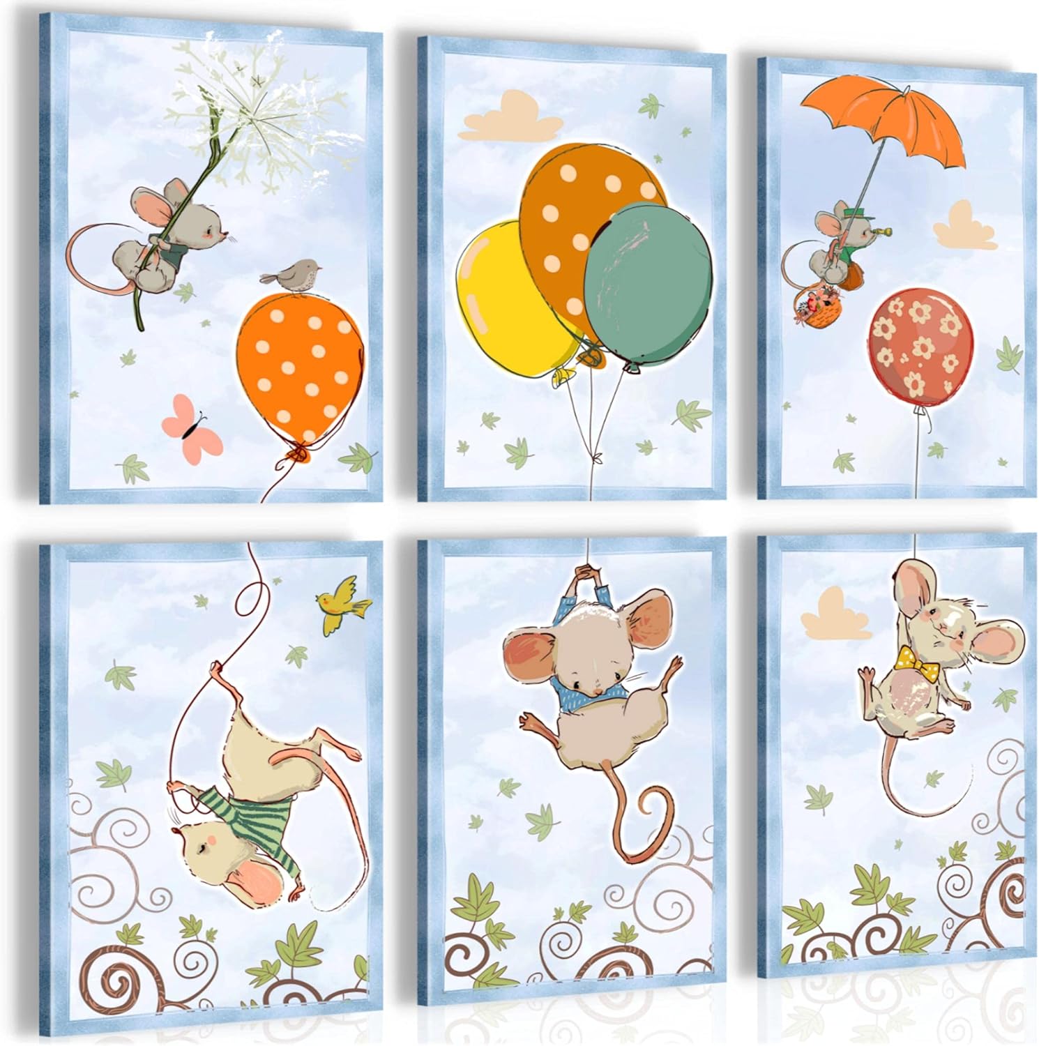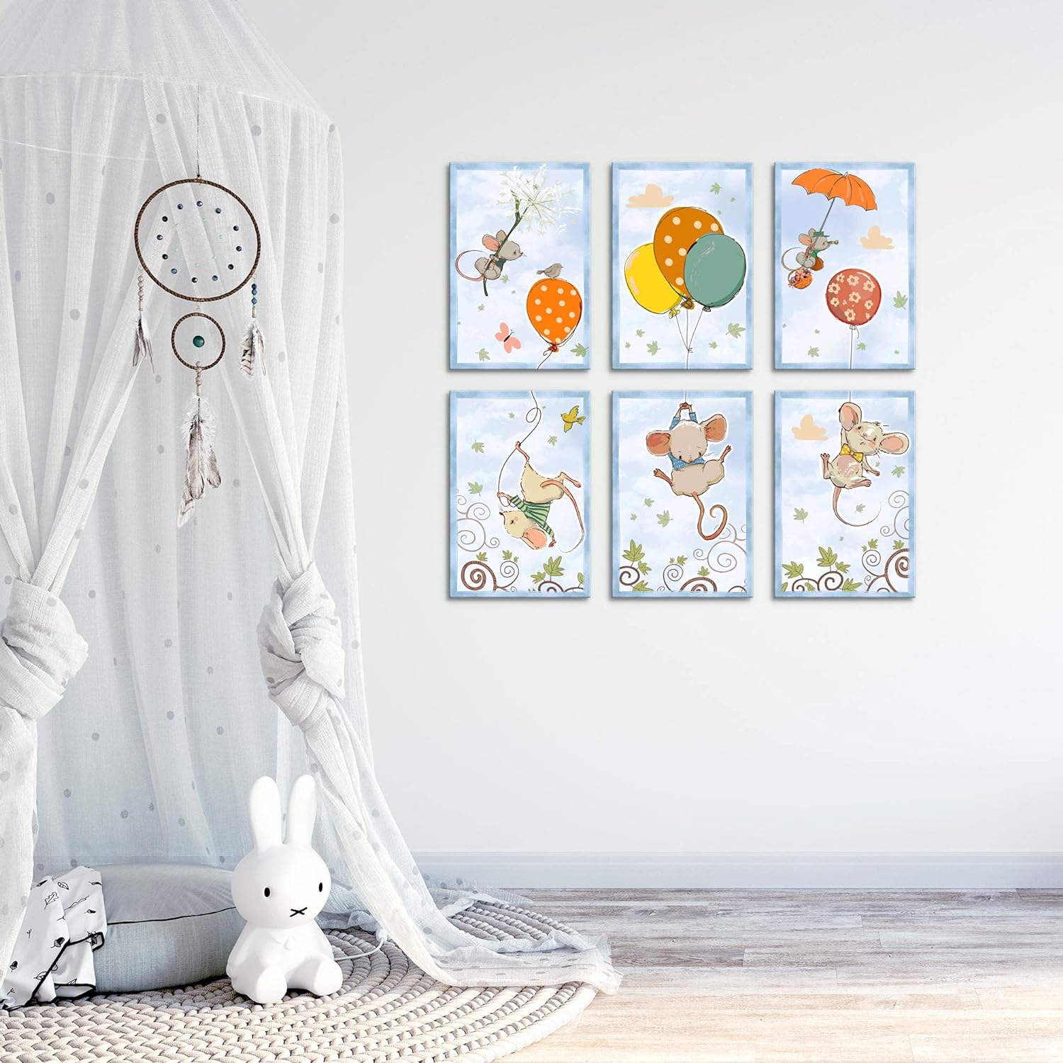 Novart Wandbilder Set - KOMPLETT AUFHÄNGFERTIG - Made in Germany - Moderne Bilder Tiere Kinderzimmer