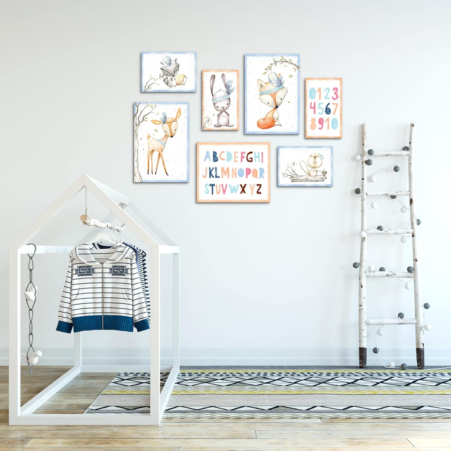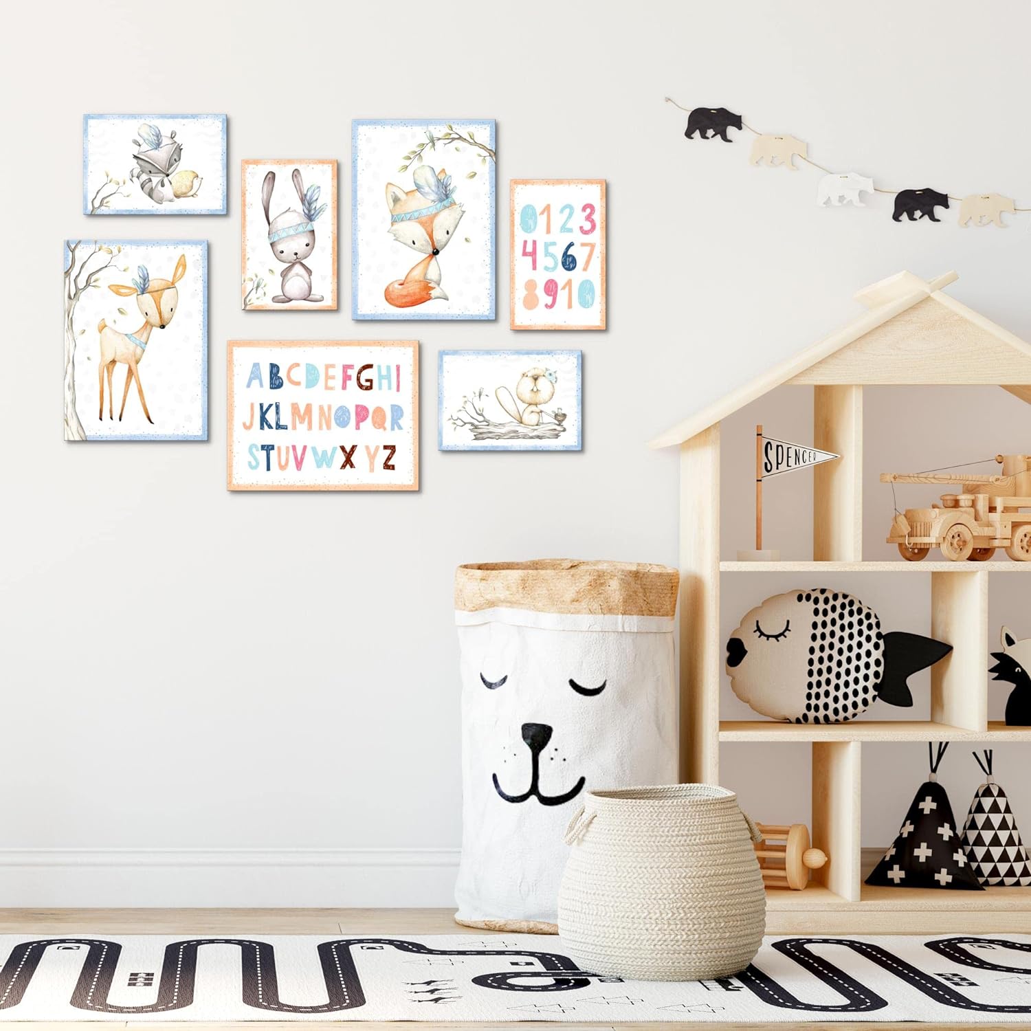 Novart Wandbilder Indianer Tiere - KOMPLETT AUFHÄNGFERTIG - Blau Kinderzimmer Mädchen Junge- 7 Moder