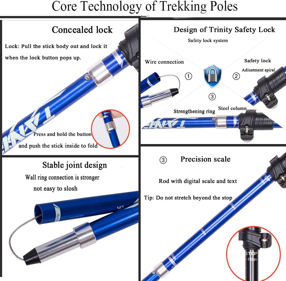 - 【LEICHT & KOMPAKT】- Die 7075 Aluminiumlegierung aus der Luftfahrt ist extrem leicht und stabil, Dadurch sind die Trekkingstöcke leicht und Bruchfest. Durch den verschleissfesten Seilen verbunden sind unsere Wanderstöcke Verschleiss-und Schnittfest,