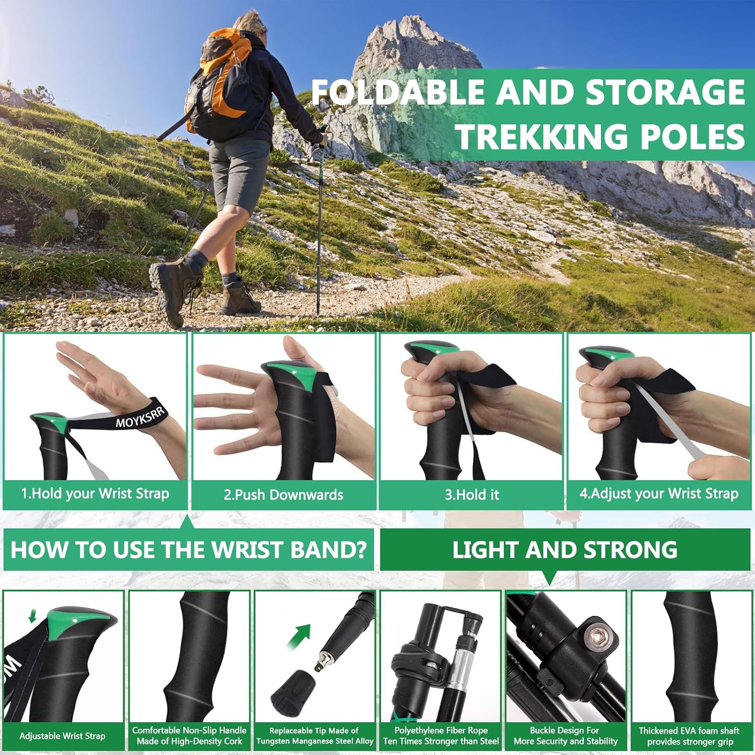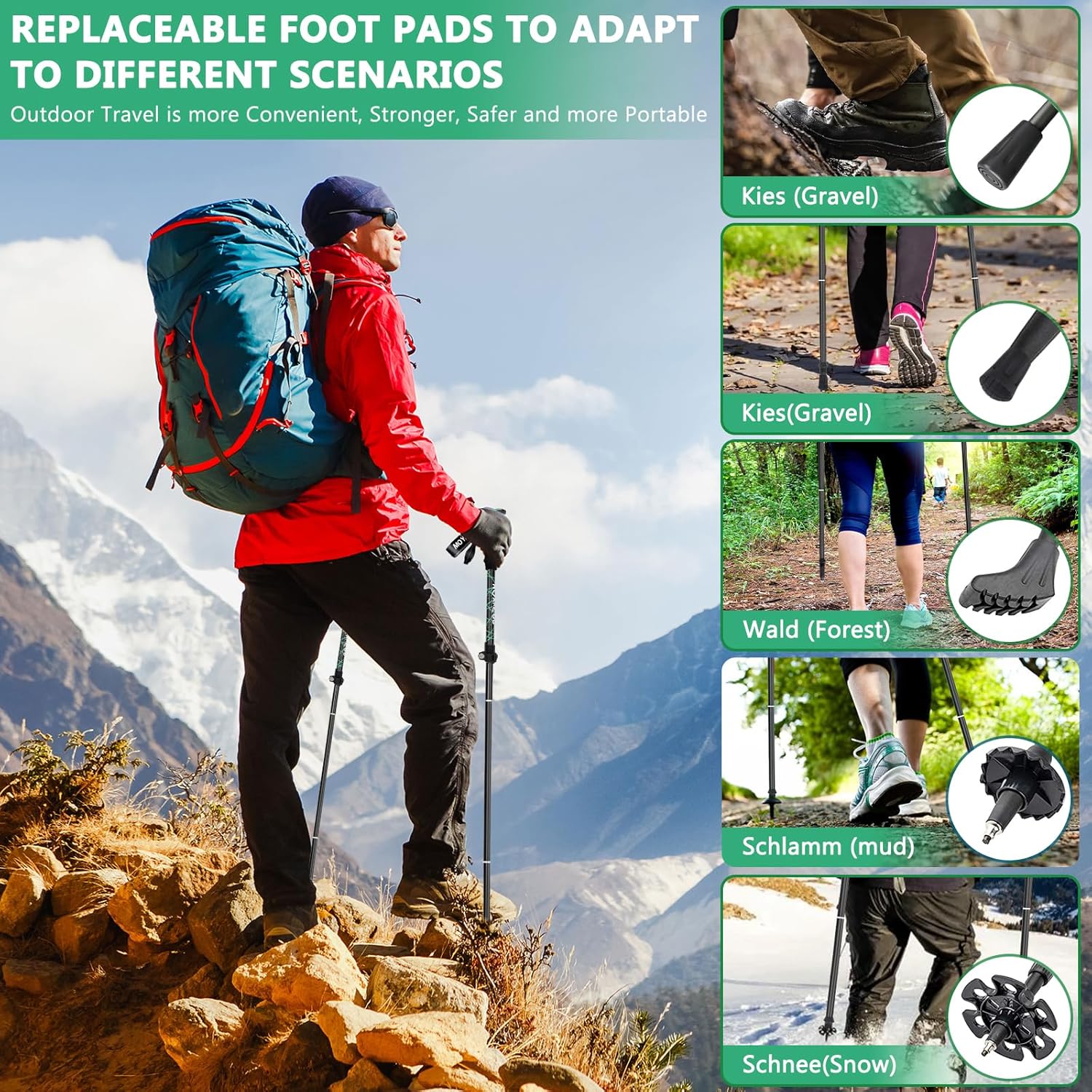- 【All Terrain Zubehör】 Wanderstöcke für das Wandern mit essentiellen Tipps-Zubehör sind für alle Gelände- und Wetterbedingungen geeignet. Robuste 4-Saison-Zubehörteile und eine abriebfeste und praktische Wolframstahlspitze. Kann nach Belieben