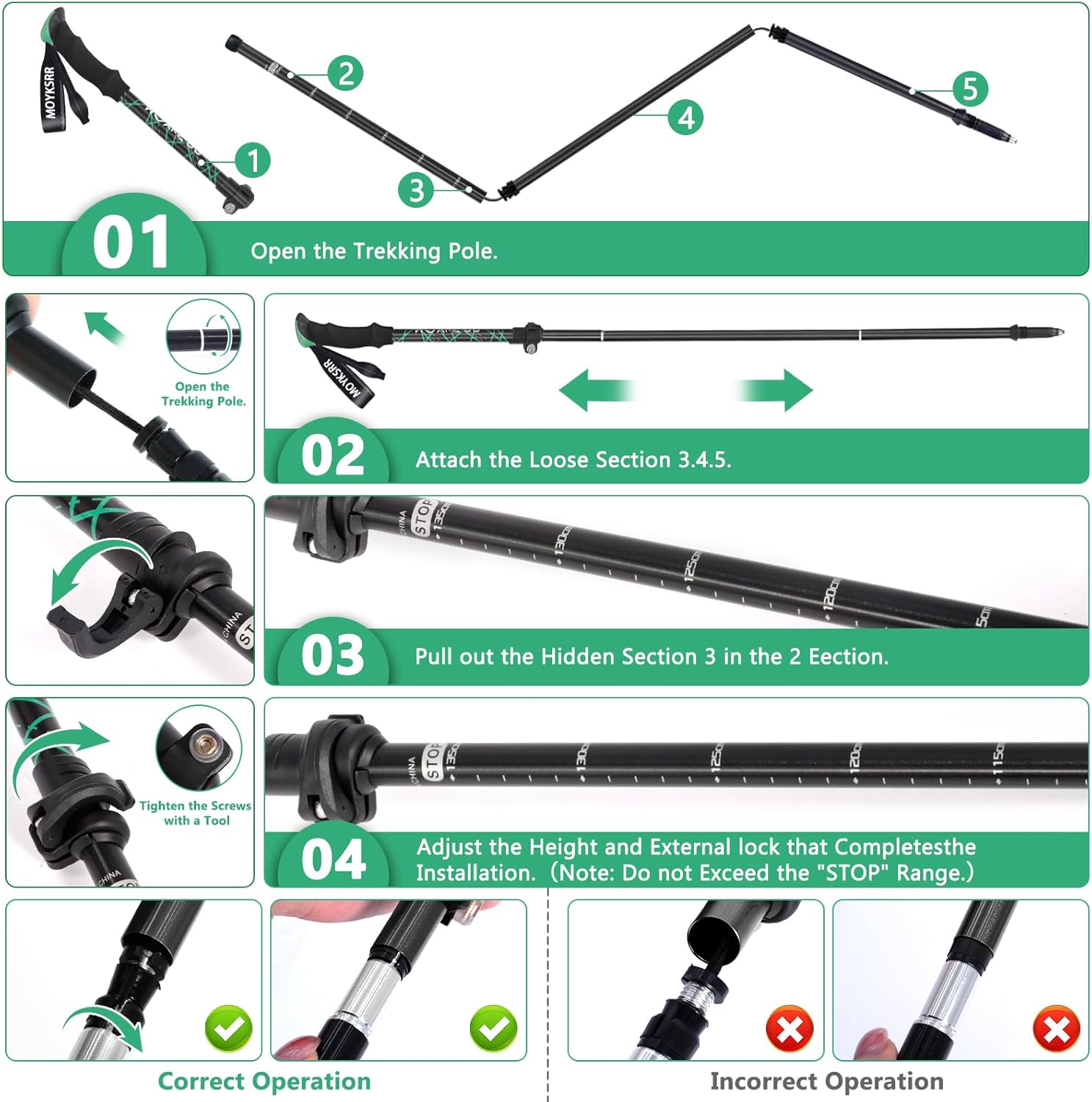 - 【Klappbar&Kompakt】Das faltbare Tri-Fold-Design der Wanderstöcke ermöglicht es ihnen,auf eine tragbare Grösse von 16,3 Zoll zusammenzuklappen,und die erweiterte Grösse kann 108-135cm einstellen (Hinweis:Überschreiten Sie bitte